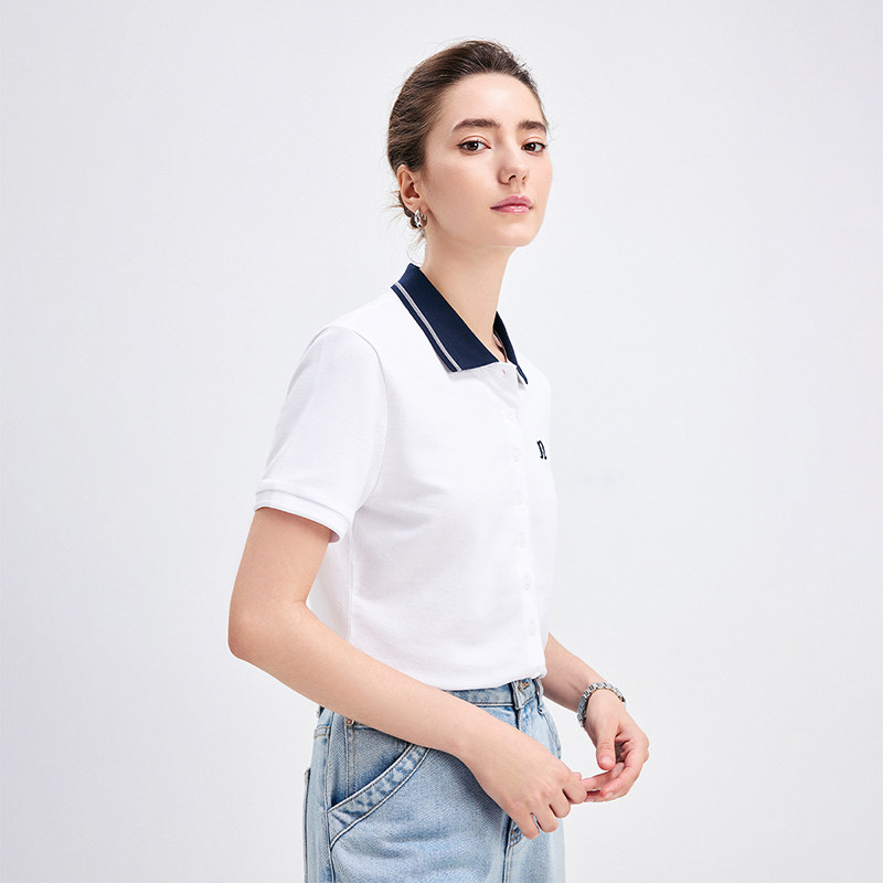Navigare意大利小帆船老钱风女士polo衫25夏季翻领短袖T恤衫