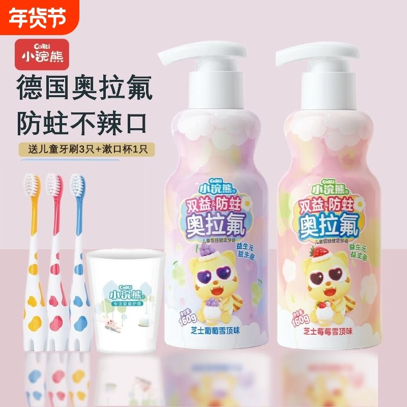 小浣熊进口奥拉氟儿童牙膏含氟防蛀牙防龋齿3-6一12岁宝宝不牙刷