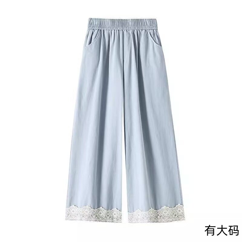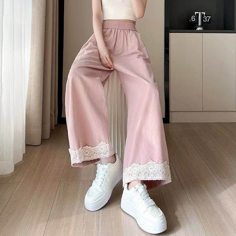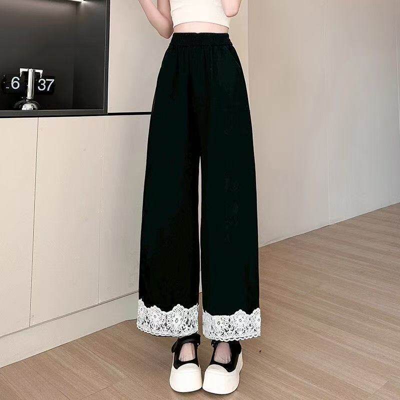 复古阔腿裤女春夏季小个子高腰显瘦宽松垂感蕾丝边九分直筒裤大码