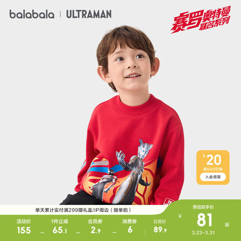【奥特曼】巴拉巴拉童装儿童加绒卫衣新款冬装男童长袖t恤百搭潮