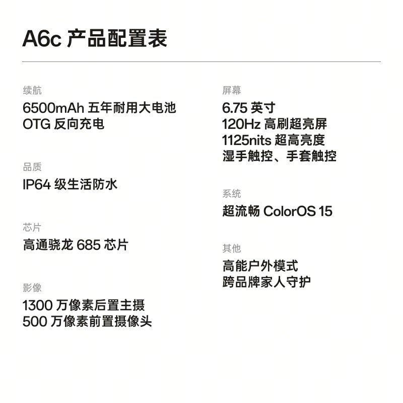 【新品上市】OPPO A6c 6500mAh五年耐用大电池 老年人智能手机 国家补贴 48个月流畅护航oppo官方旗舰店