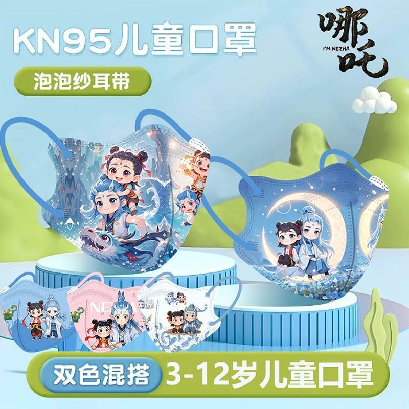 卡通哪吒儿童口罩KN95透气立体防护3-12岁男女孩防飞沫秋冬加厚潮