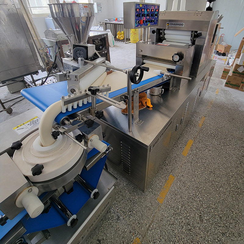 多功能酥饼膨化机大型鲜花饼月饼馅全自动成型流水线烘焙烘培坊