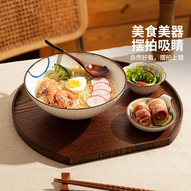 家用高级感陶瓷盘子日式瑞和手绘线条餐具套装深口菜盘精致碗碟子