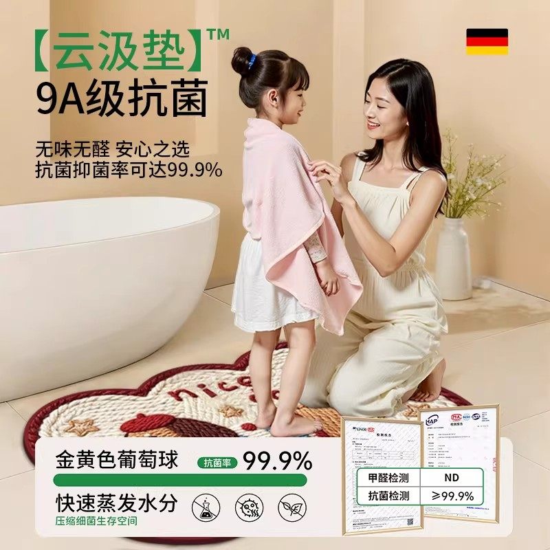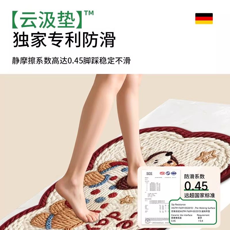 圣卡罗帝硅藻泥浴室卫生间卡通吸水地垫厕所速干防滑踩脚垫小地毯