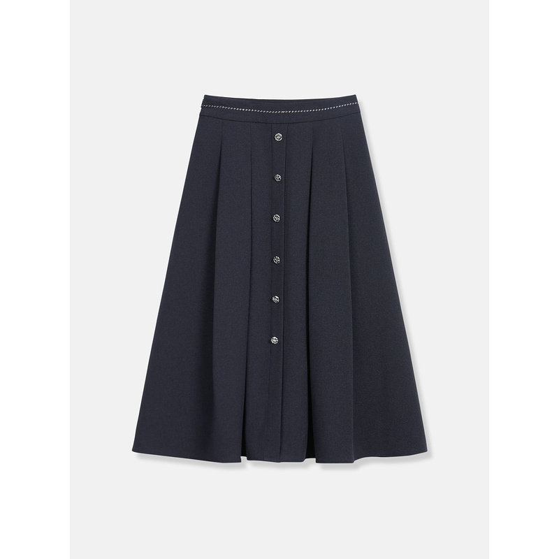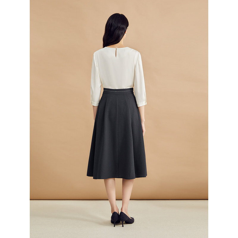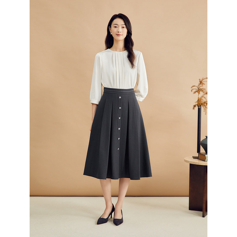 YINER音儿专选秋季通勤风中长款纽扣拼接A字裙半身裙