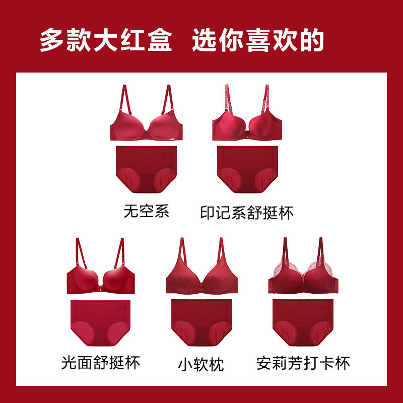 天猫惊喜盒丨安莉芳马年本命年内衣套装女结婚红色女士文胸礼盒