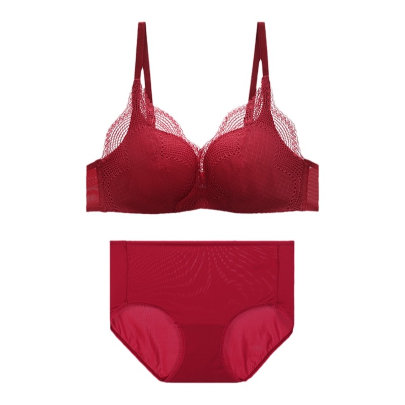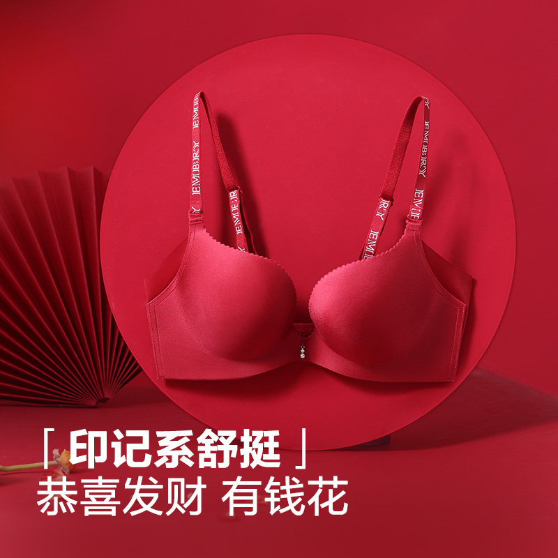 猫人本命年小胸聚拢红色内衣新款无痕显大结婚新娘文胸罩内裤套装
