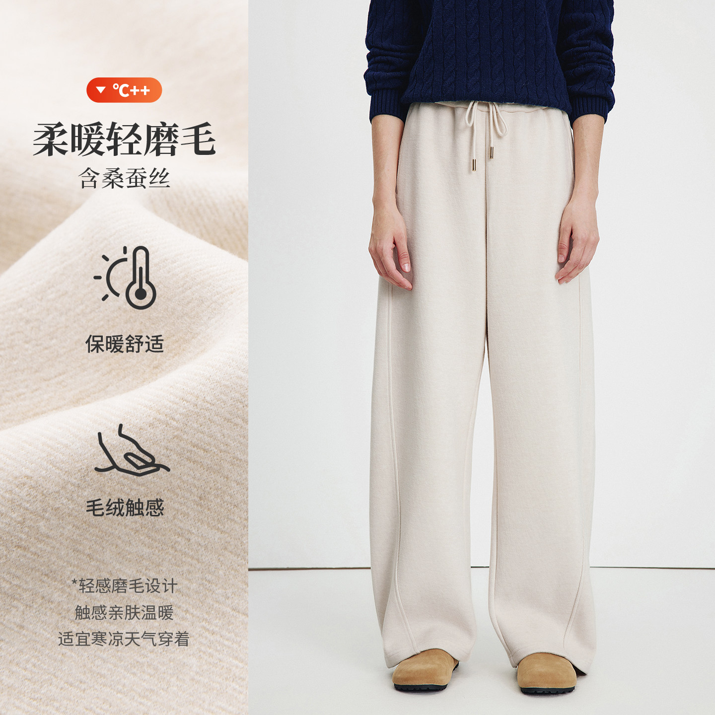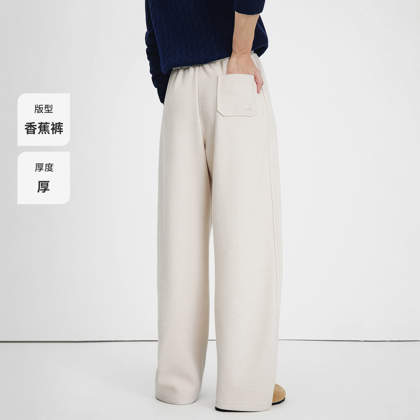 Navigare意大利小帆船松紧腰磨毛休闲裤女25秋冬新款高腰香蕉裤