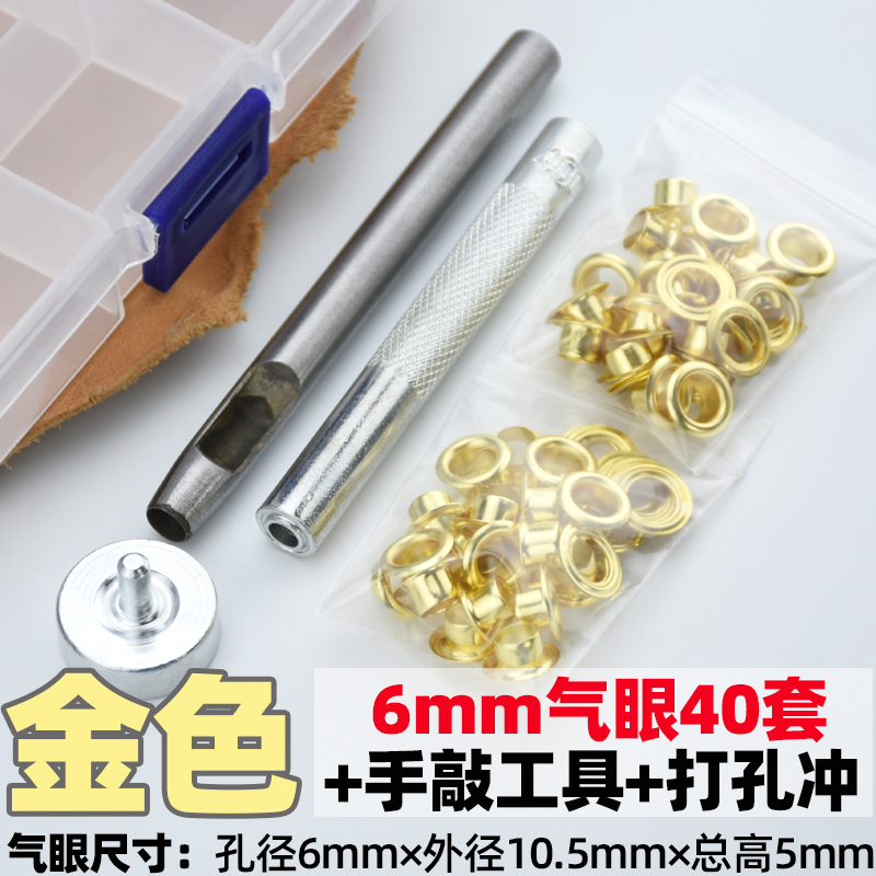 优质纯铜气眼40套+安装工具鸡眼扣皮带孔吊牌眼鞋金色古铜银黑色