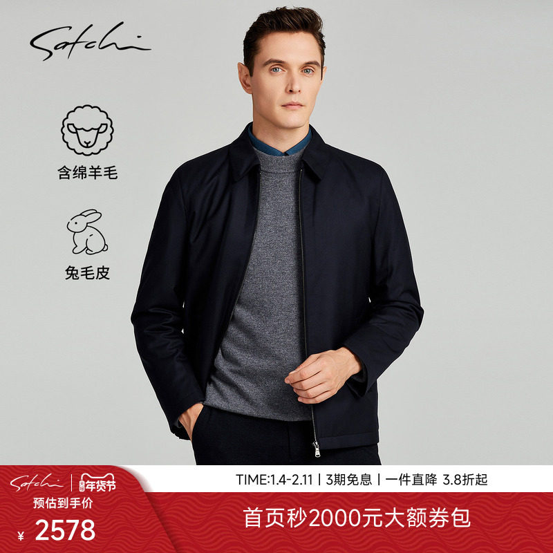 SATCHI沙驰男装男士皮草冬季新款商务兔毛保暖行政夹克羊毛外套男
