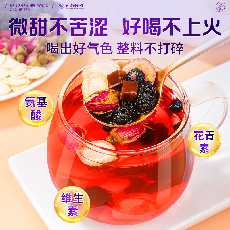 北京同仁堂红枣桂圆枸杞茶玫瑰花阿胶人参女生补气养血调理养生茶