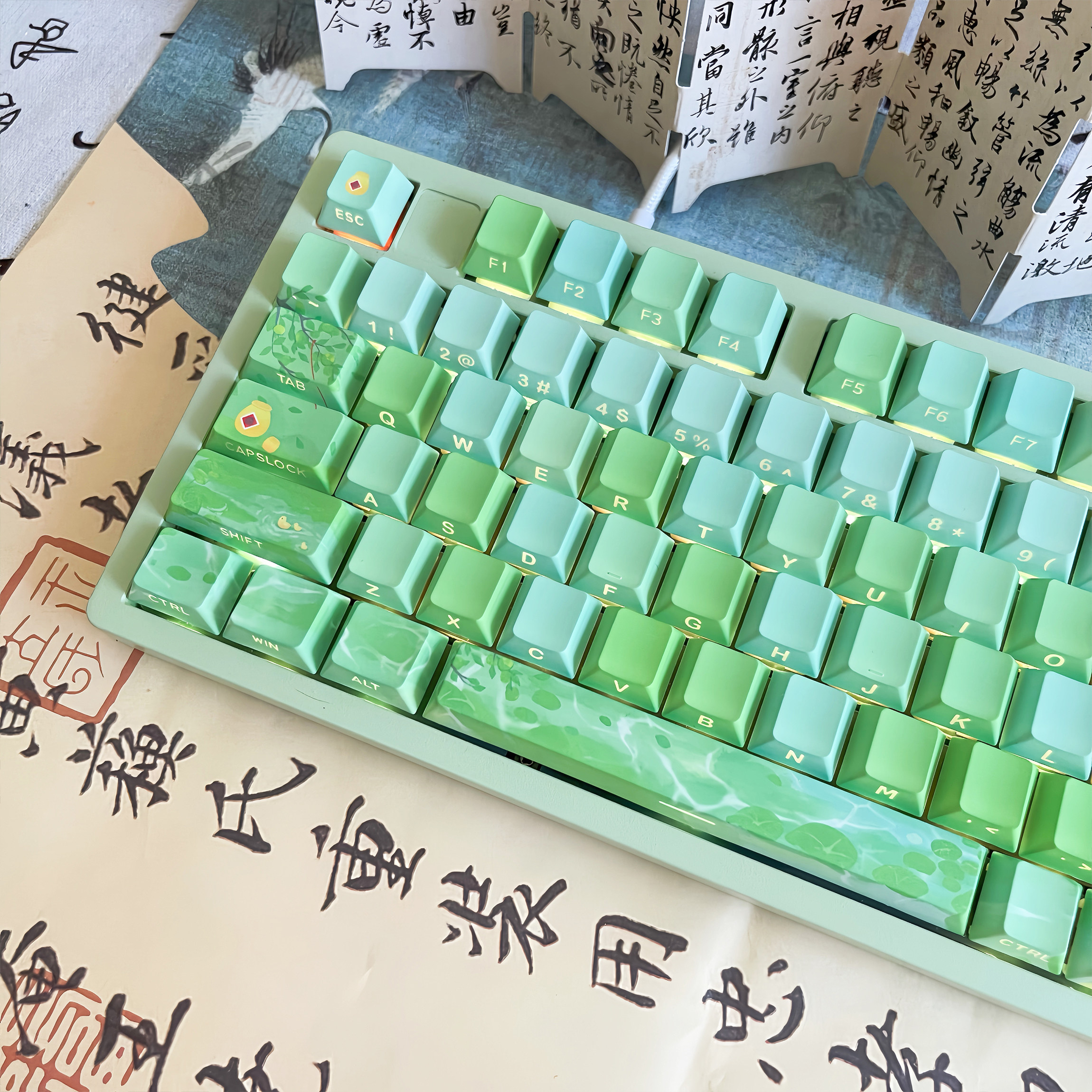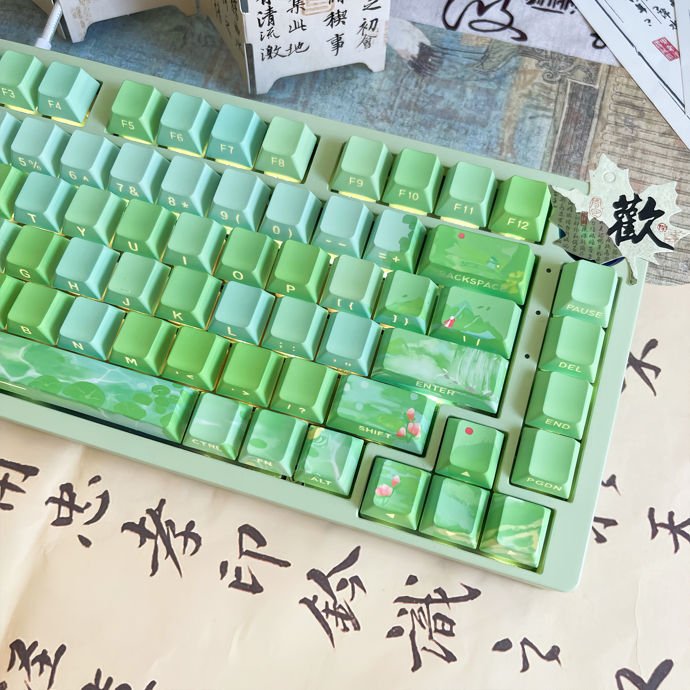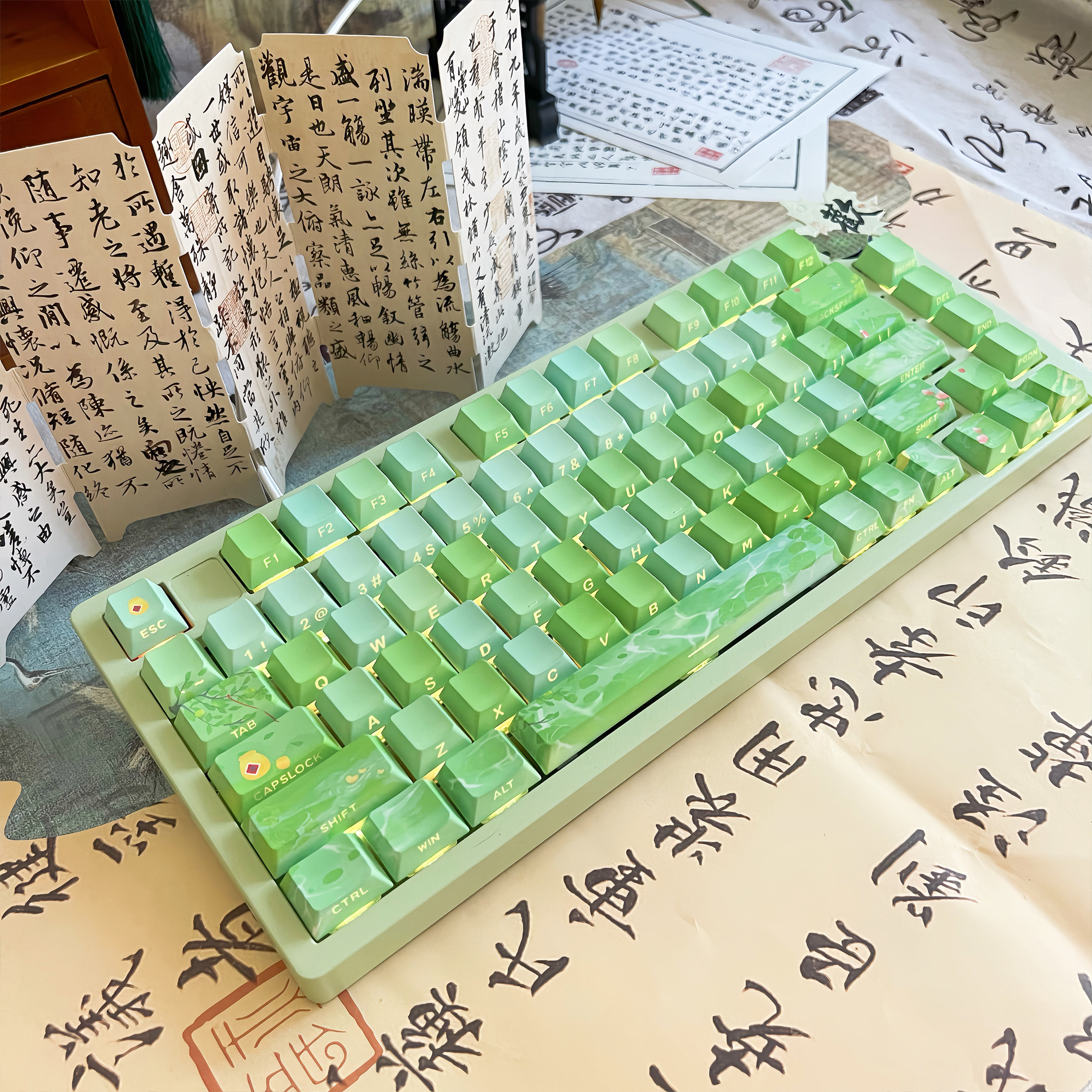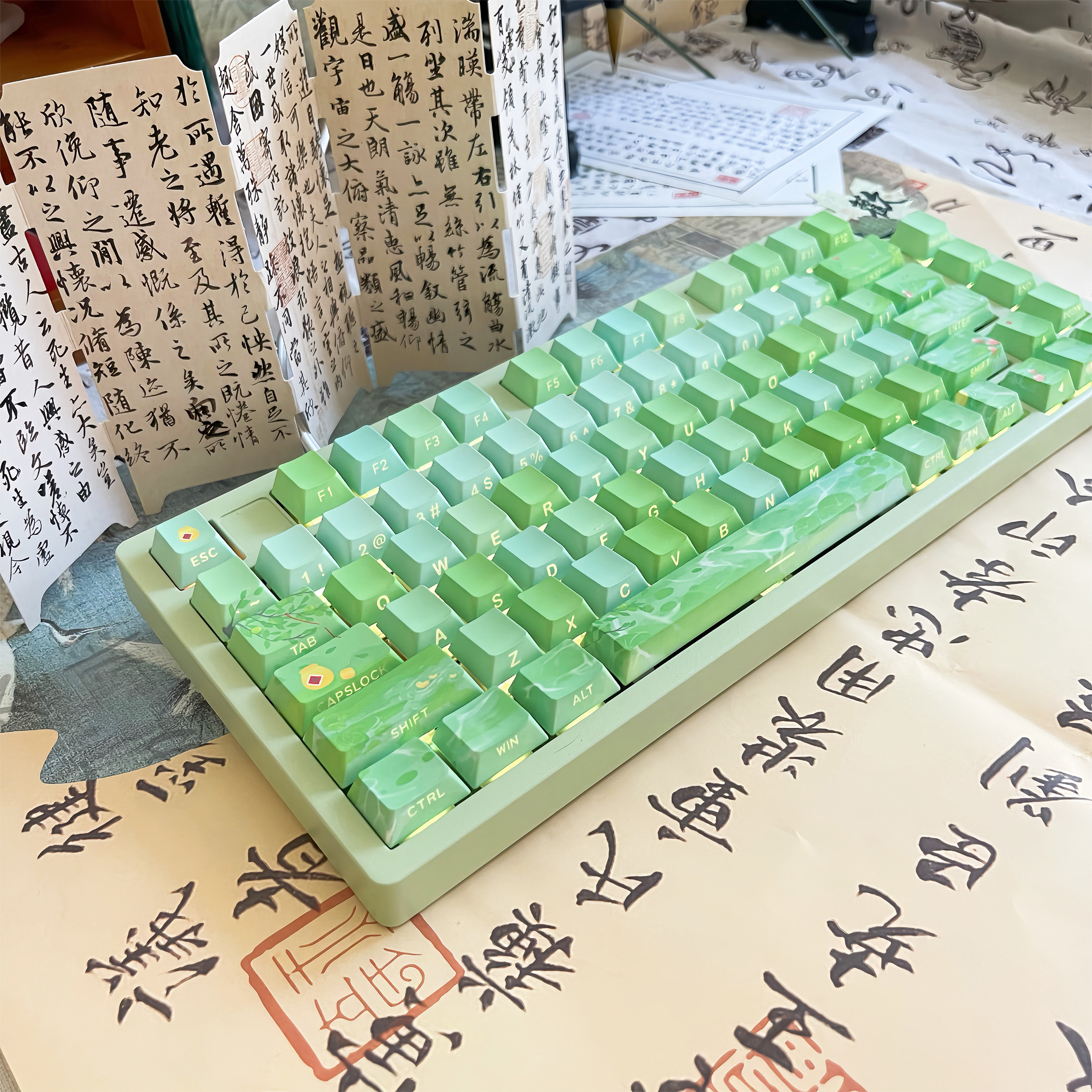 嗨前青梅听雨温古风风景画透光键帽PBT一壶青梅酒键盘键帽