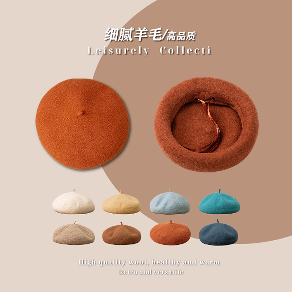2025秋冬新款纯色羊毛贝雷帽韩版时尚深檐羊绒贝雷帽女