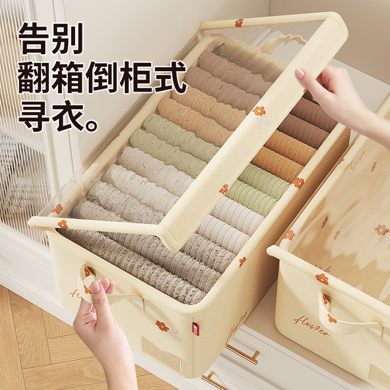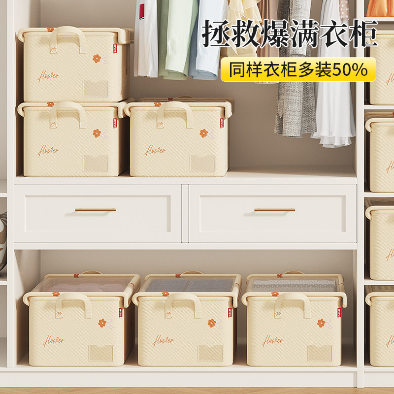 衣柜衣服收纳箱家用衣物裤子棉麻折叠整理盒抽屉式储物筐【秒杀4