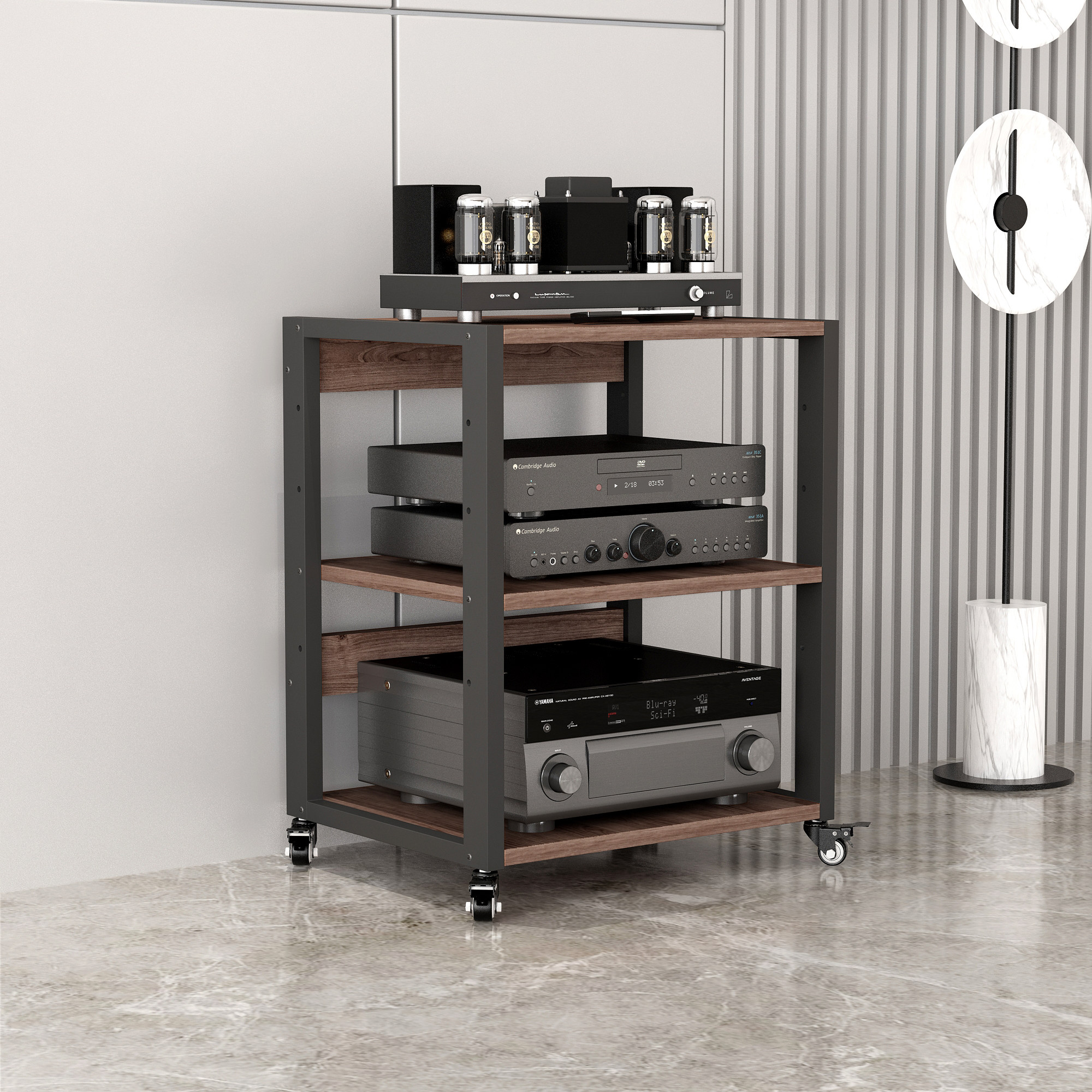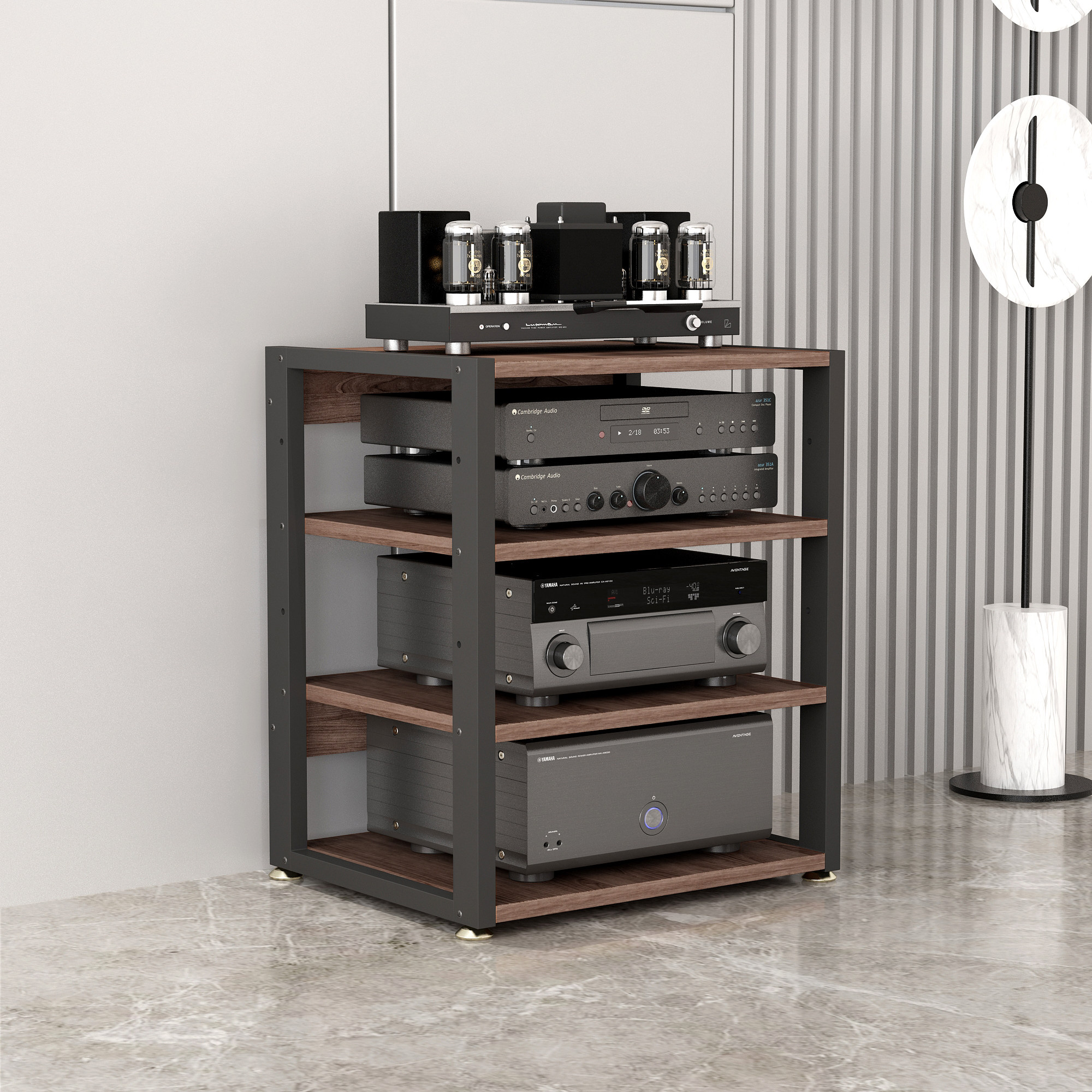 钢架实木组合功放机架胆机支架CD机柜黑胶唱片机解码器耳放收纳架