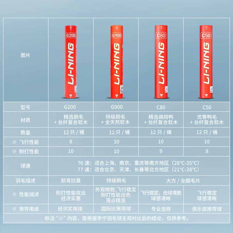 李宁羽毛球耐打稳定鸭毛球C70/C80/C90/D6/D8室内锻炼训练球