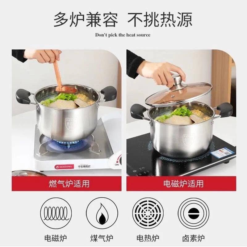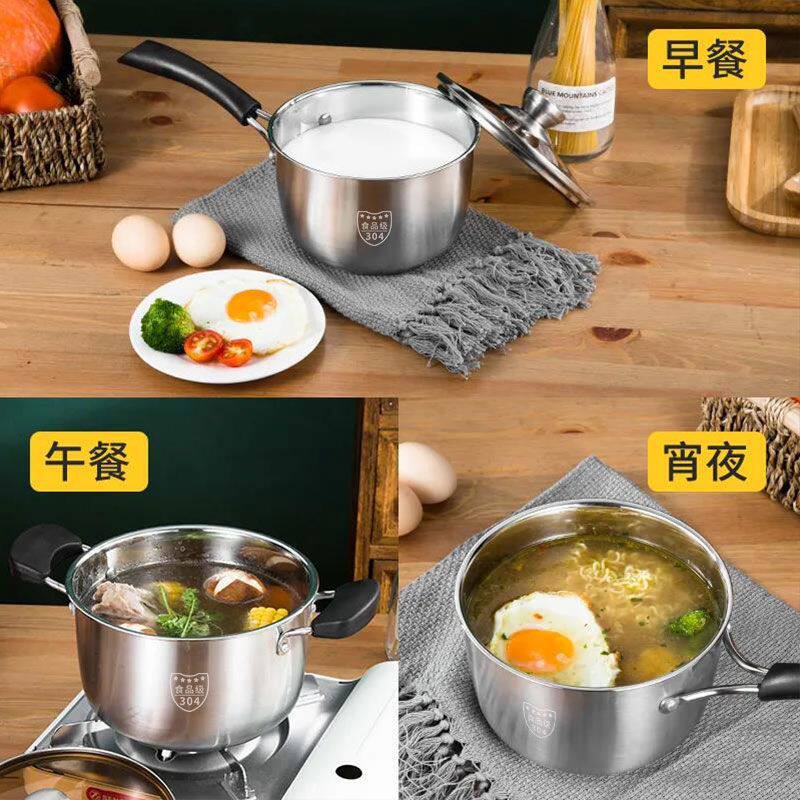 304加厚不锈钢奶锅家用汤锅火锅泡面锅辅食锅电磁炉燃气蒸锅