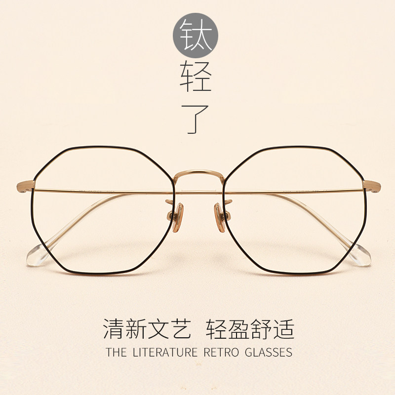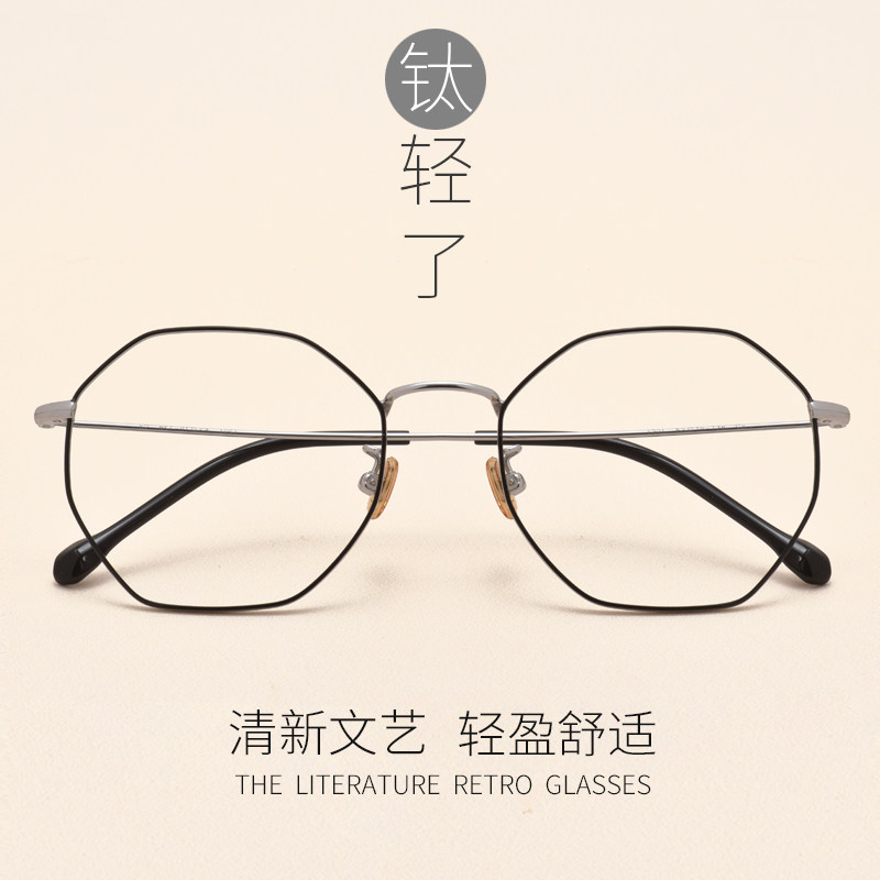 超轻纯钛复古潮流网红女防蓝光防辐射抗疲劳可配度数不规则眼镜男