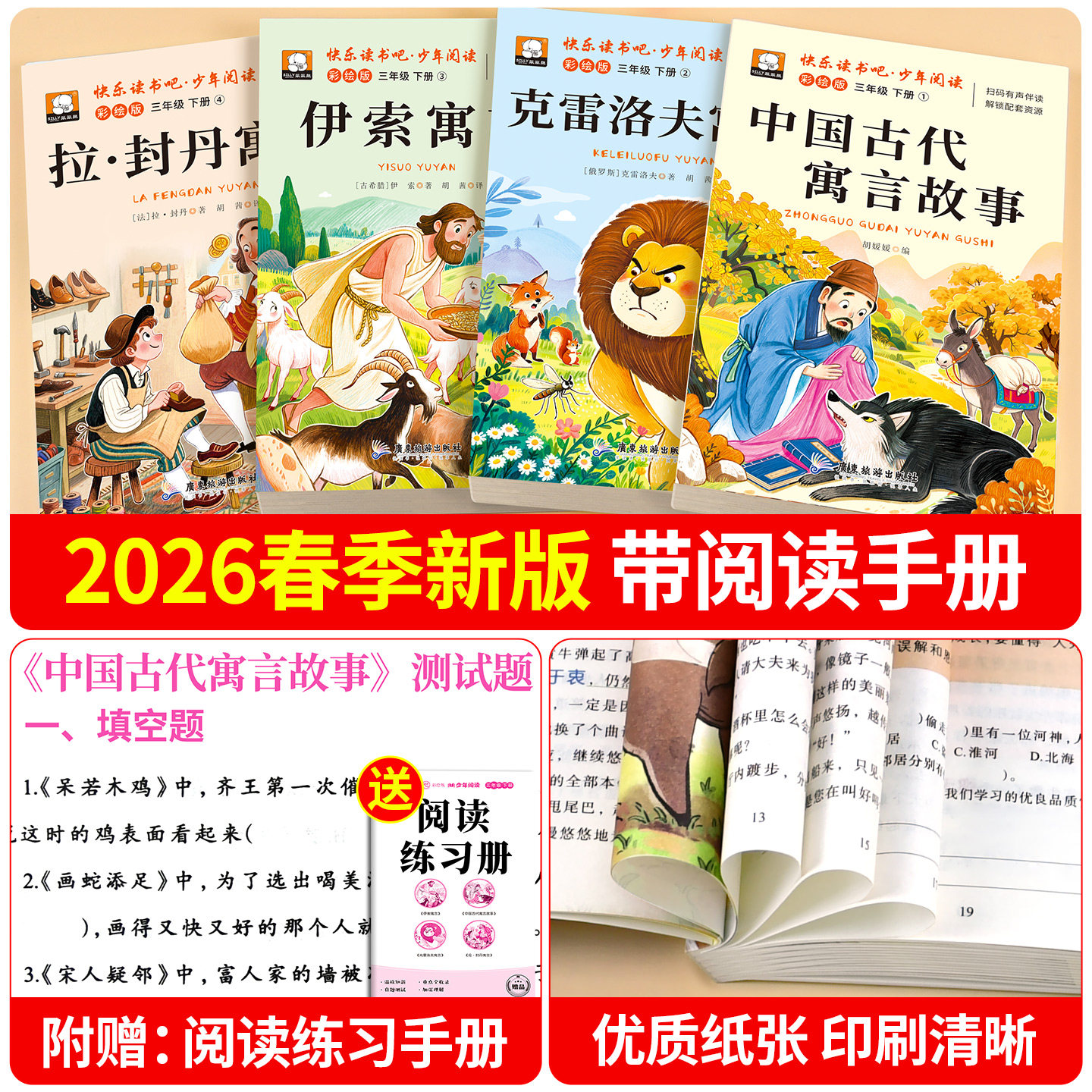 三年级下册快乐读书吧必读的课外书4册中国古代寓言故事伊索寓言克雷洛夫拉封丹寓言正版经典书目小学生阅读书籍老师推荐原著奇妙