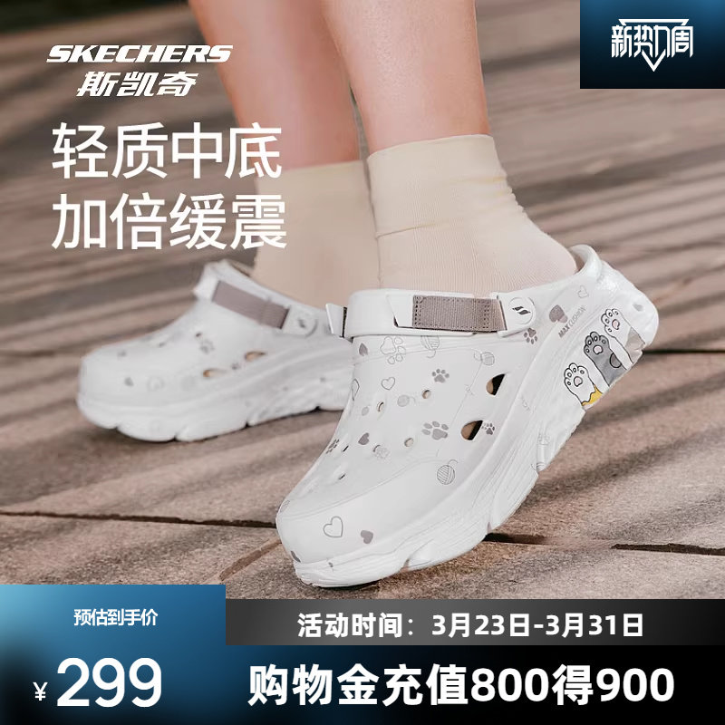 斯凯奇猫爪洞洞鞋萌宠系列夏季新款女子凉鞋厚底百搭增高沙滩凉鞋