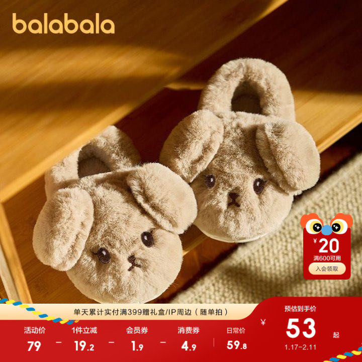 巴拉巴拉儿童棉拖鞋男童女童冬季宝宝棉鞋加绒加厚室内家居毛毛鞋