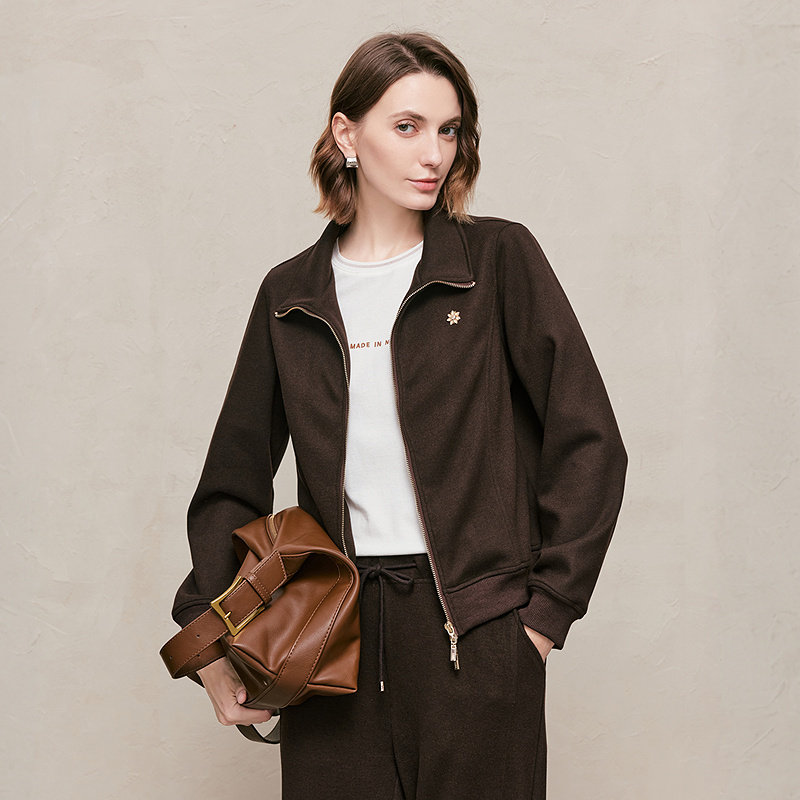FINITY菲妮迪短外套2026年春季新款简约双拉链时尚立领休闲上衣女