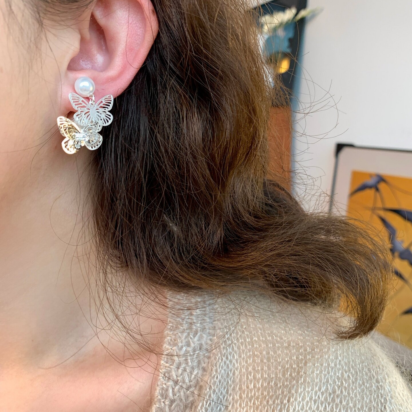 《蝴蝶纷飞》一款两戴施家大灯泡珍珠超仙耳夹耳饰耳钉耳环无耳洞