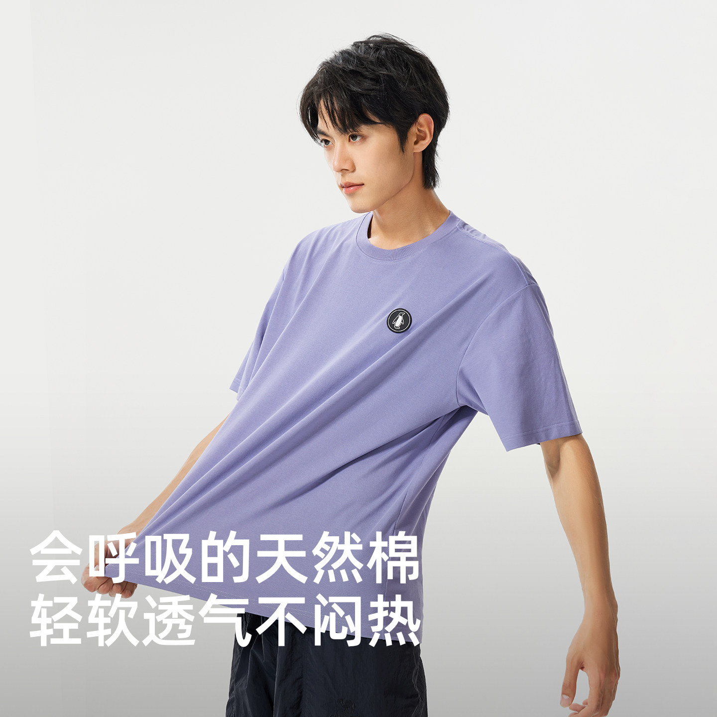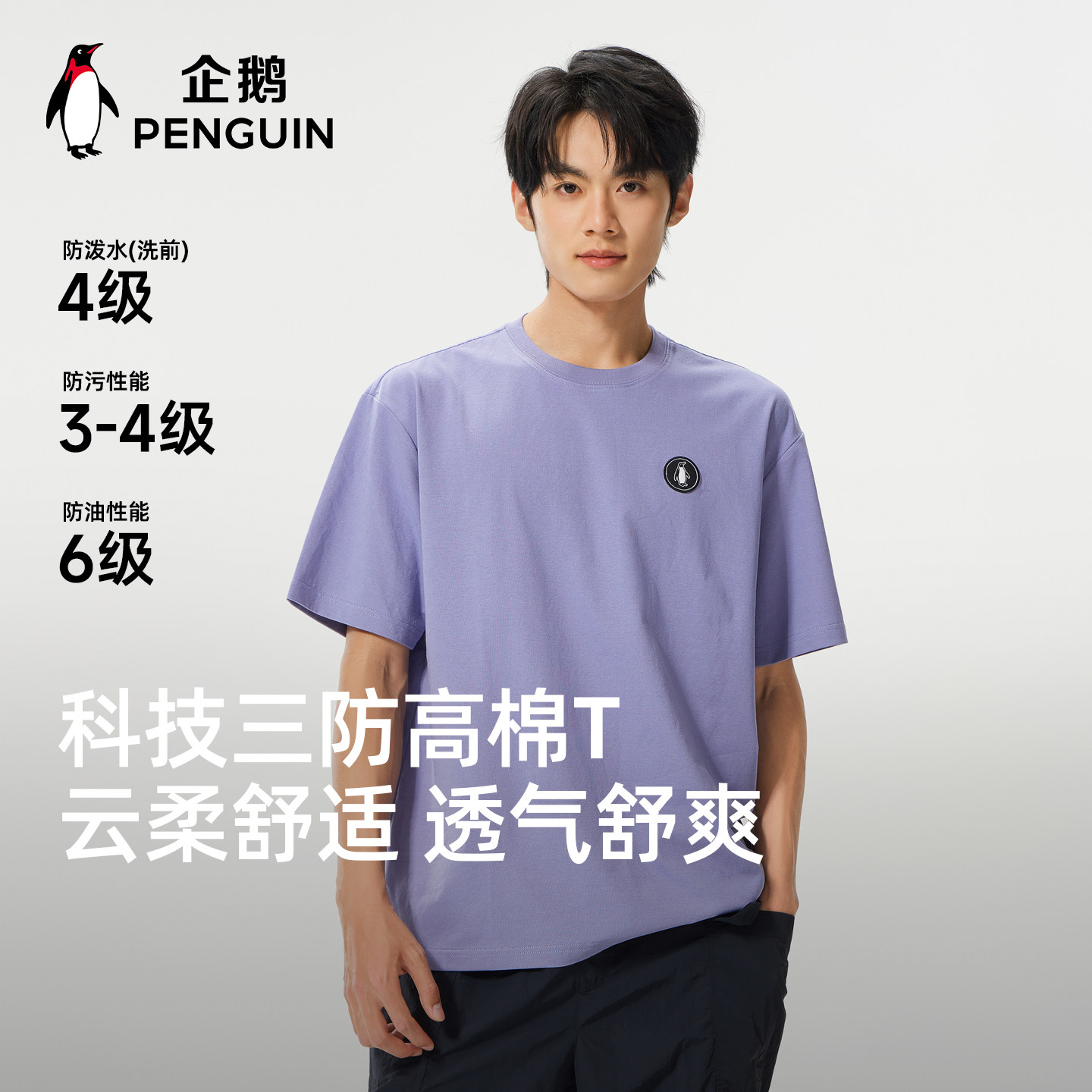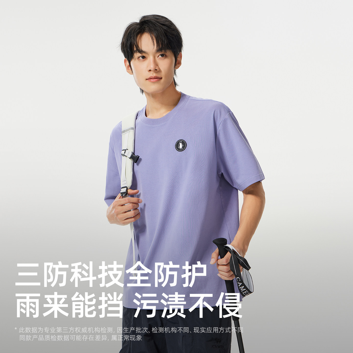 骆驼男装企鹅户外休闲短袖T恤男春夏新款紫色运动t恤宽松透气三防