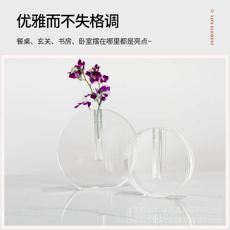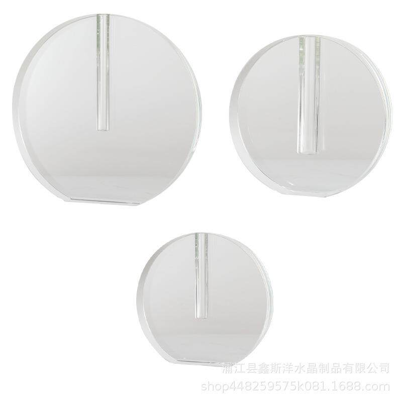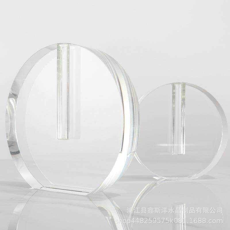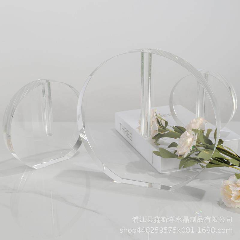 创意轻奢圆饼水晶花器花艺花瓶玄关样板间客厅家居软装家饰工艺品