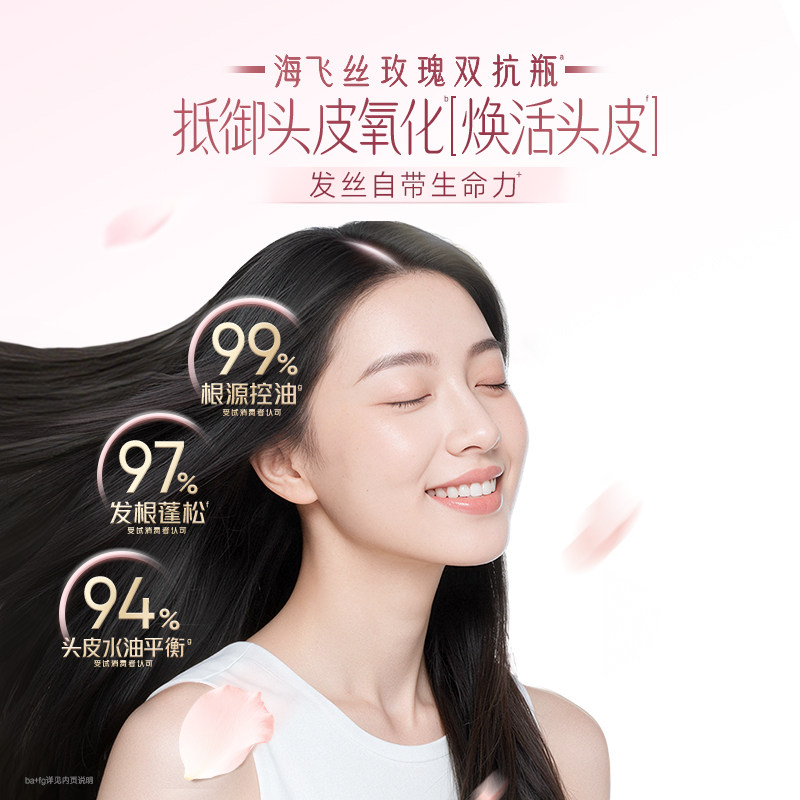 【王鹤棣专属】海飞丝玫瑰双抗瓶控油蓬松去屑柔顺修护洗发水官方