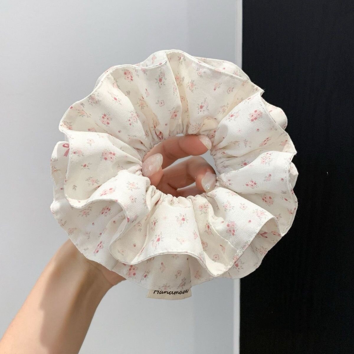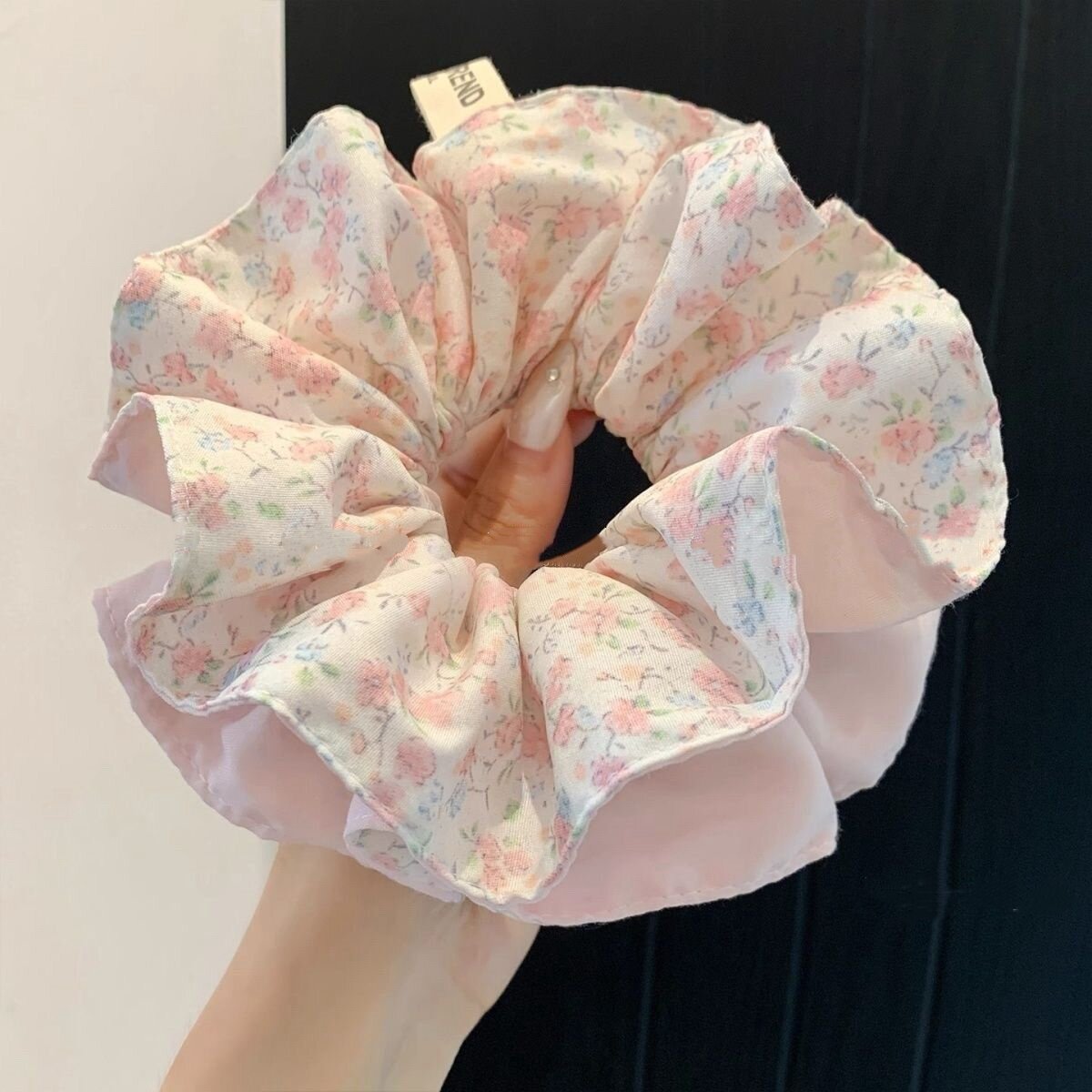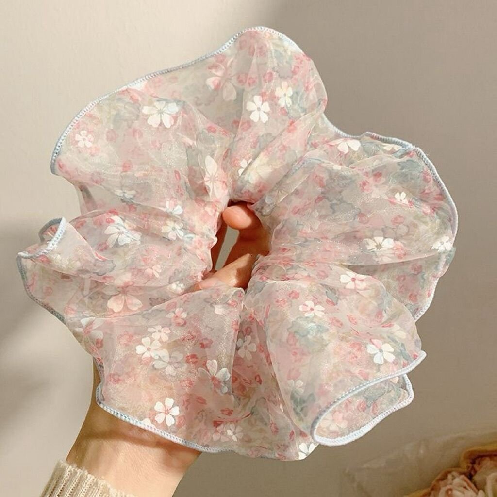 柔软泡泡纱韩国粉色碎花大肠发圈女高级感仙气慵懒风头绳发饰发圈