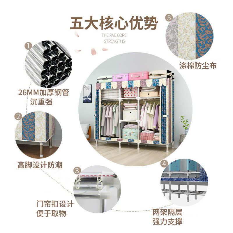 简易衣柜家用卧室出租房用收纳柜子组装全钢架结实耐用布衣柜衣橱