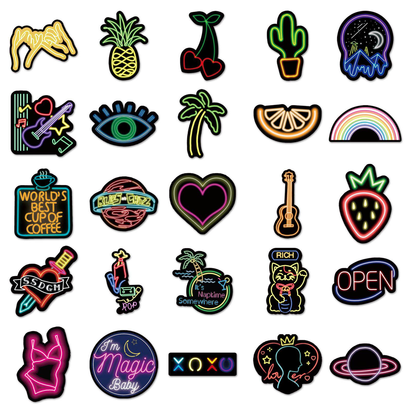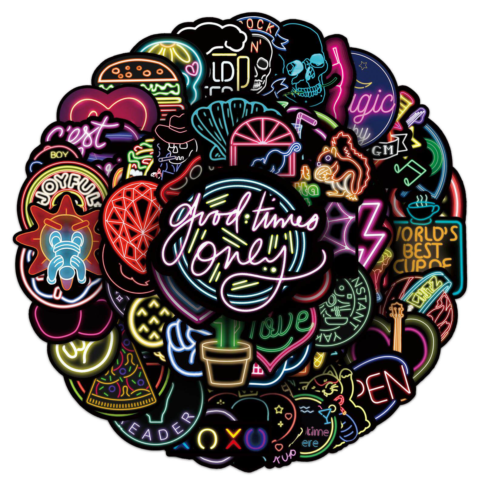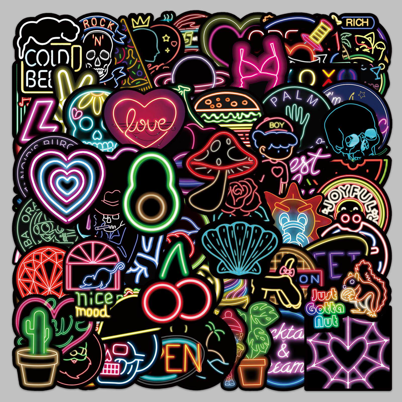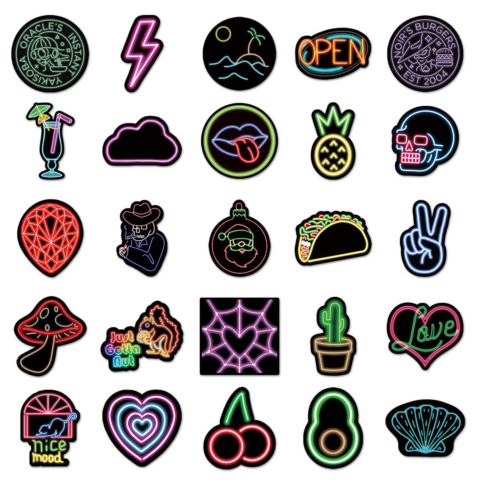 100张霓虹灯创意涂鸦贴纸笔记本电脑行李箱摩托车汽车装饰贴纸