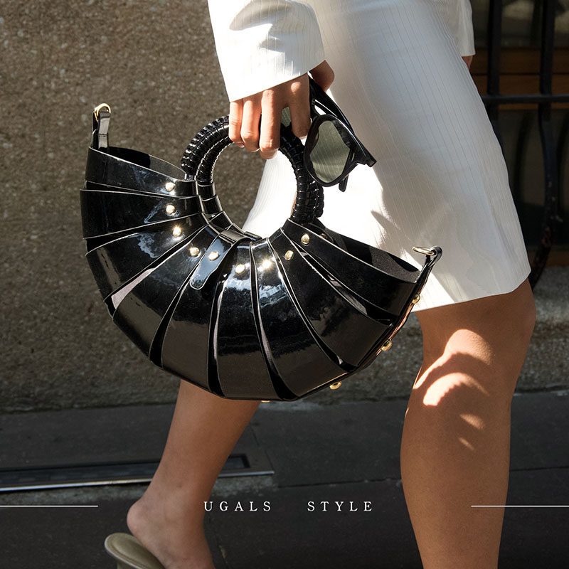 UGALS复古大容量镂空高级金属感编织菜篮子水桶单肩手拿斜挎包女