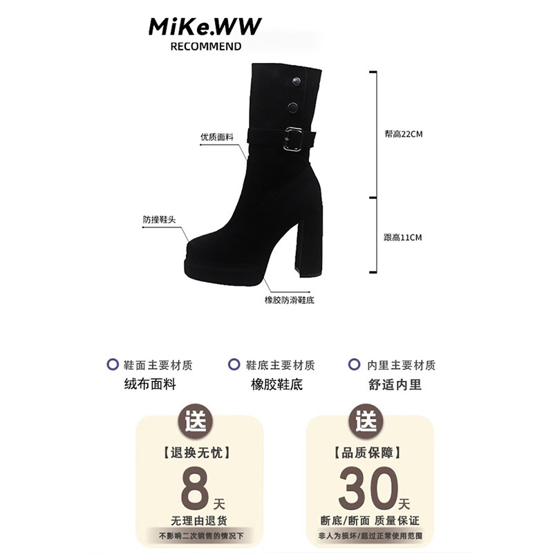 小众复古风粗跟显瘦短靴女2025新款秋季百搭增高小个子高跟中筒靴