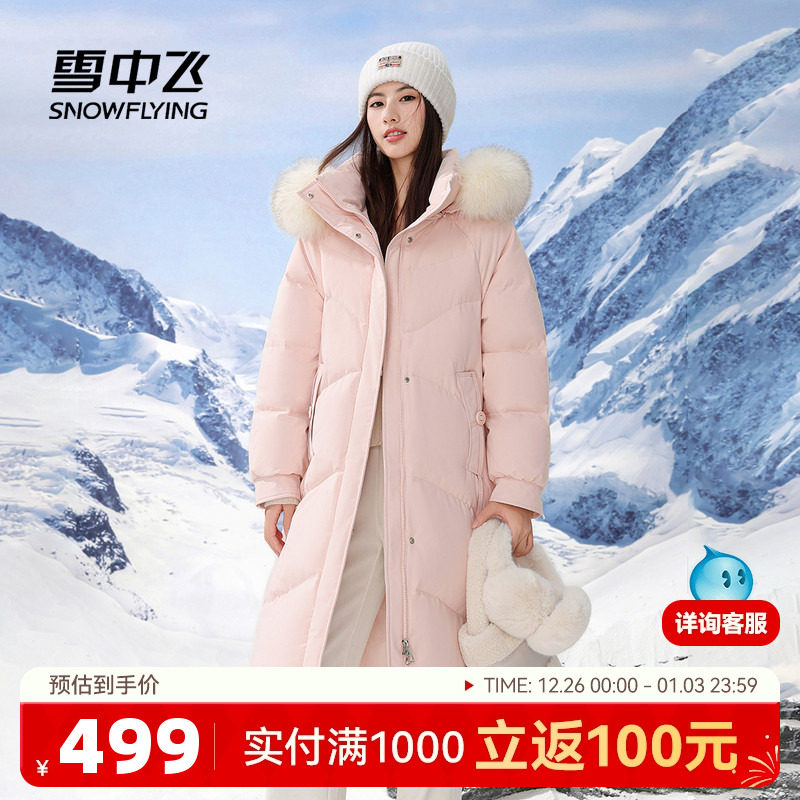 雪中飞2025冬新款女士长款可脱卸帽狐狸毛领羽绒服韩版甜美保暖