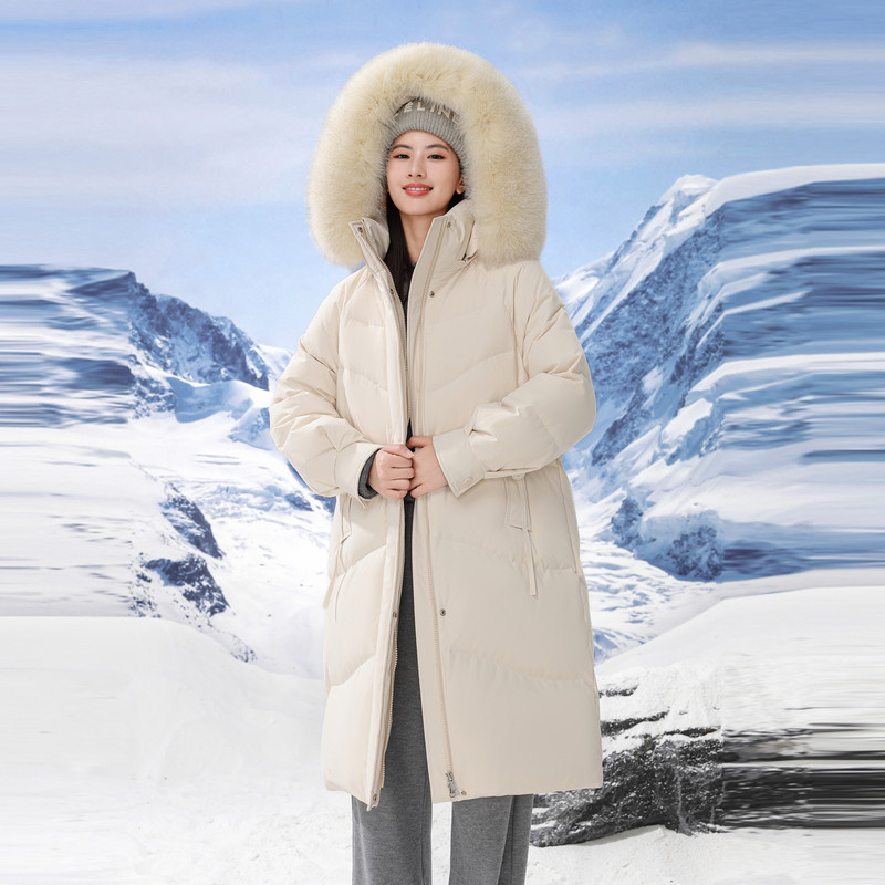 鸭鸭中戏pro羽绒服女冬季反季中长款羽绒服过膝加厚95绒波兰鸭绒J