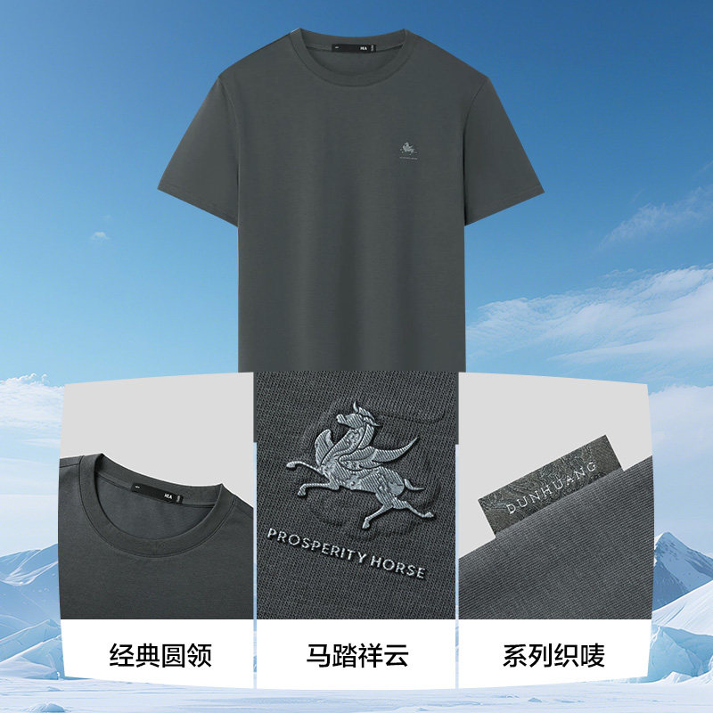 HLA/海澜之家马年贺岁系列短袖T恤26春夏新凉感马踏祥云上衣男装