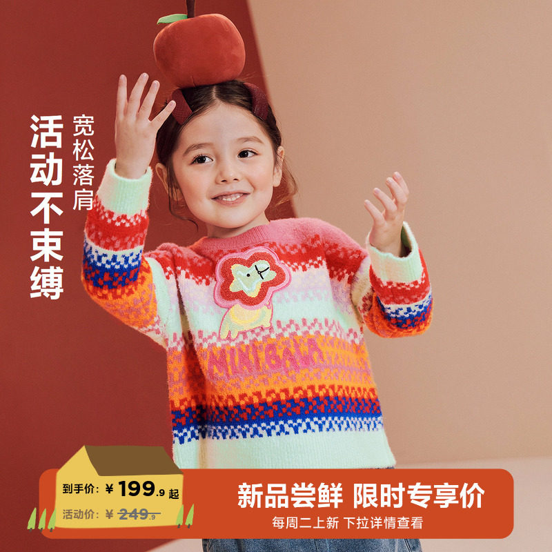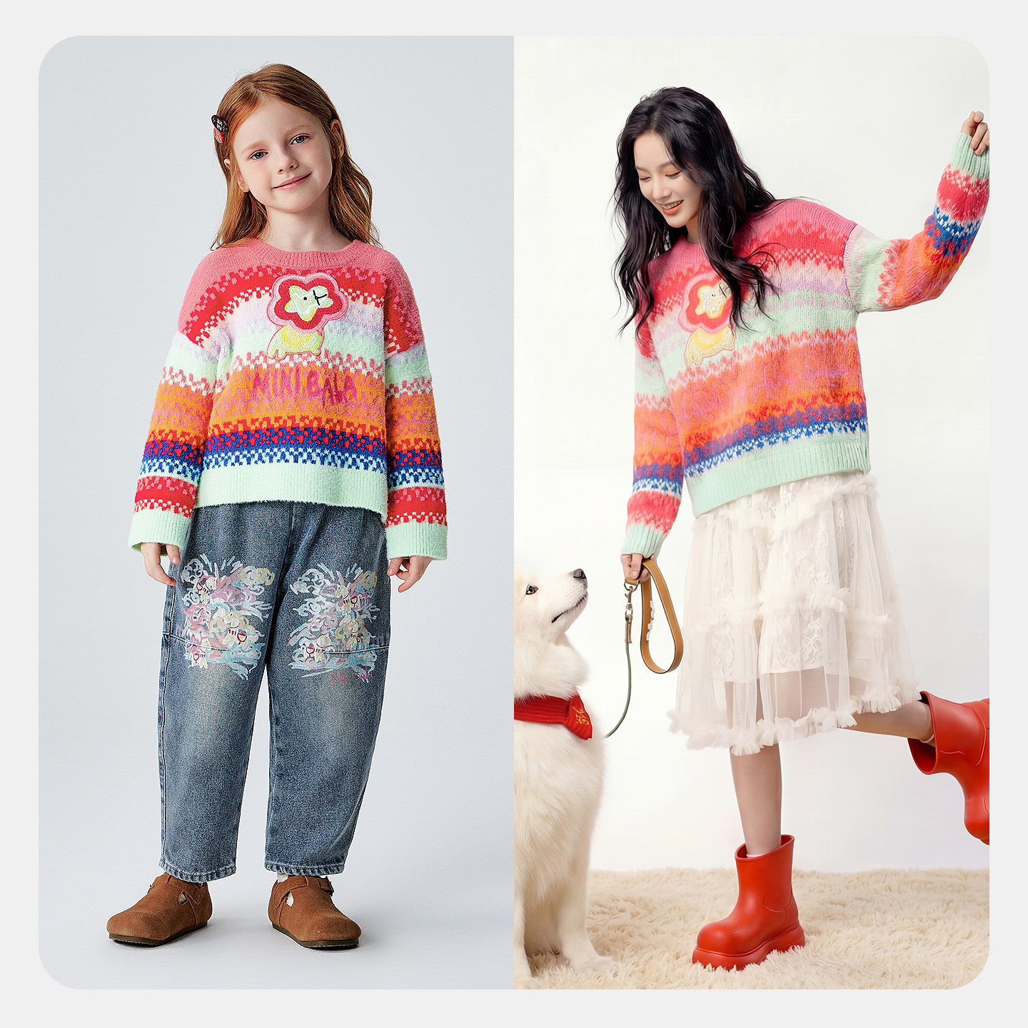 【密扇联名】迷你巴拉女童儿童亲子毛衣牛仔裤新年红色马年拜年服