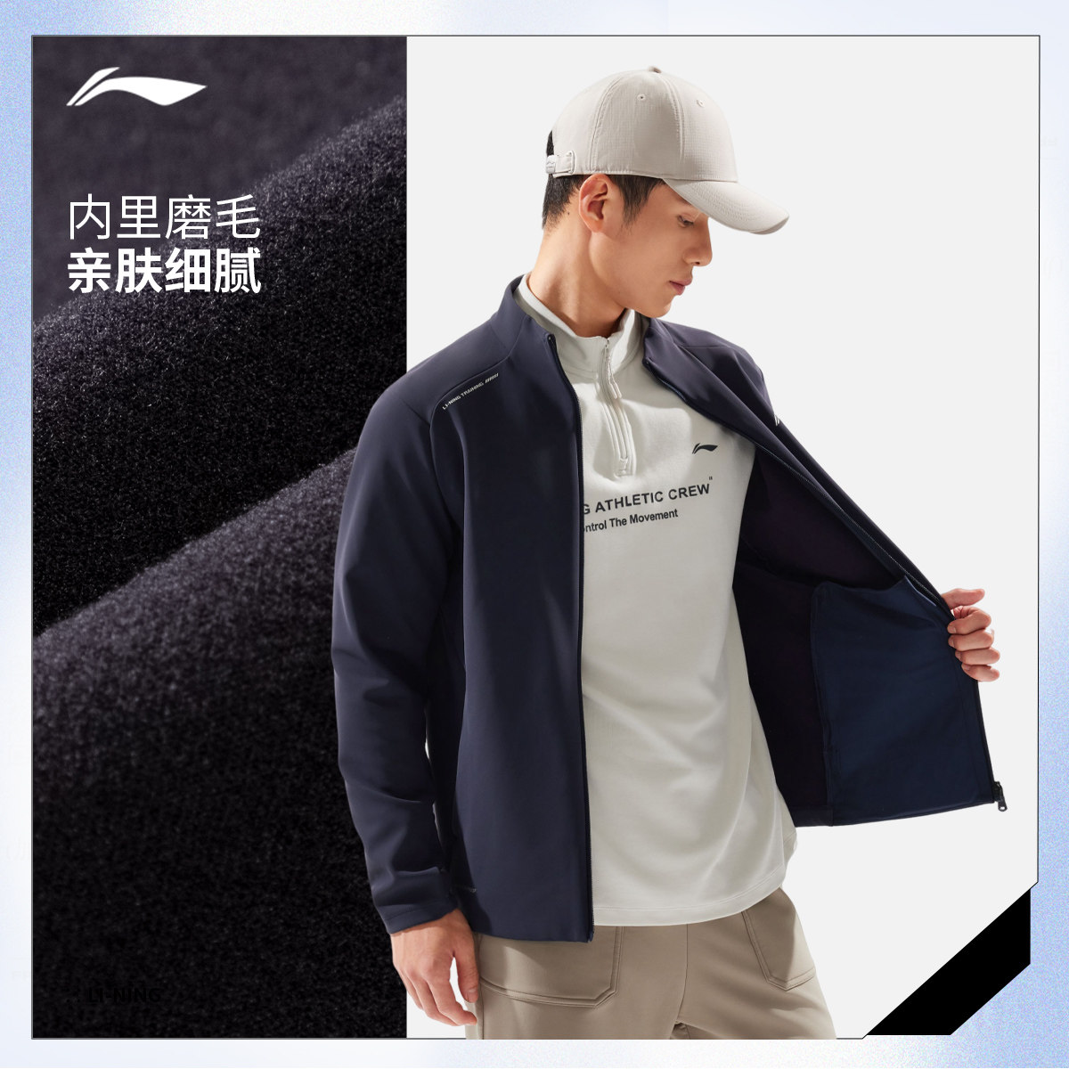 李宁软壳外套男冬季新款跑步夹克上衣保暖户外冲锋加绒厚运动风衣