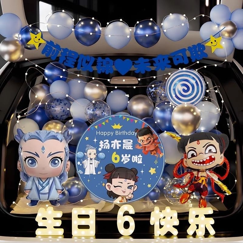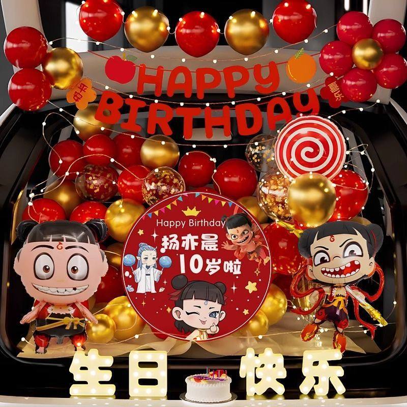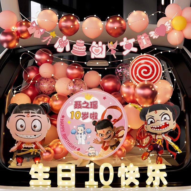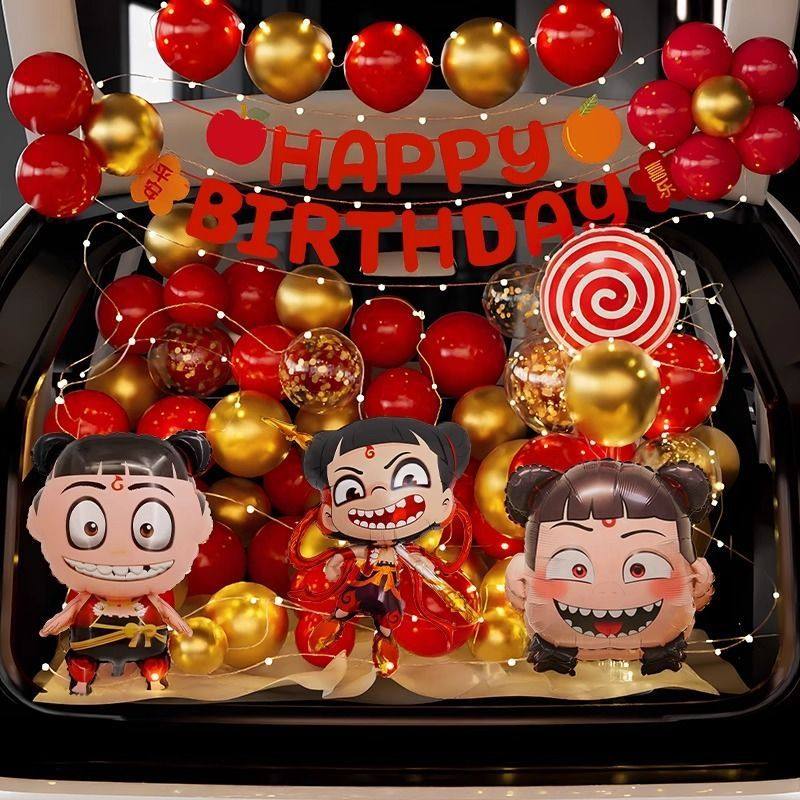 汽车哪吒后备箱主题气球男孩生日装饰儿童惊喜周岁派对布置场景10