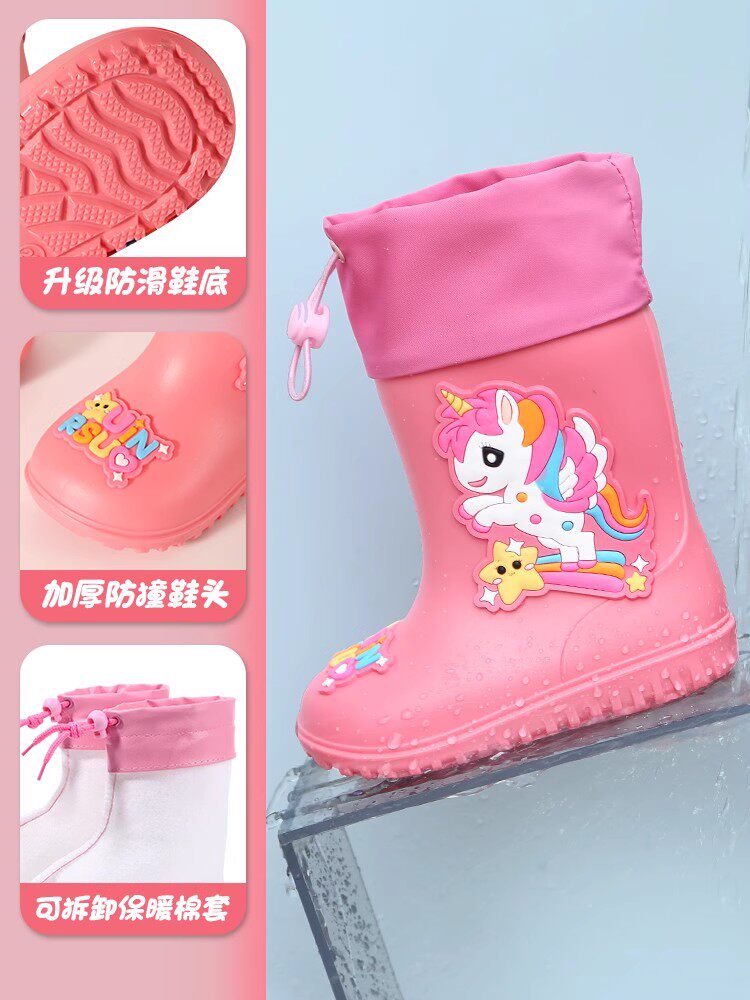 儿童雨鞋男童宝宝雨靴女童小学生防滑防水加绒保暖胶鞋短大童雨天