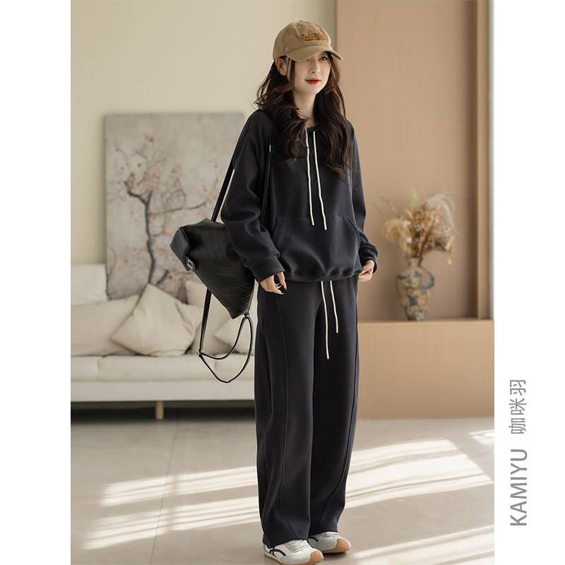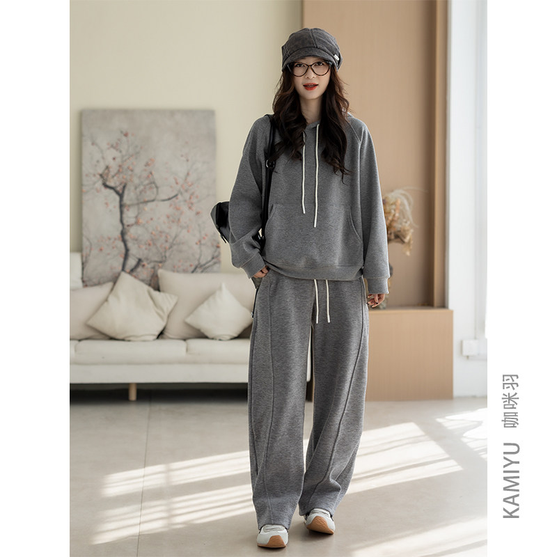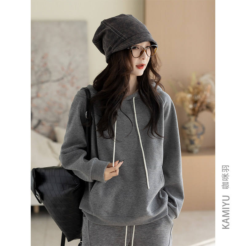 咖咪羽套装女秋冬新款女士卫衣宽松纯色拼接百搭时尚女装运动卫裤