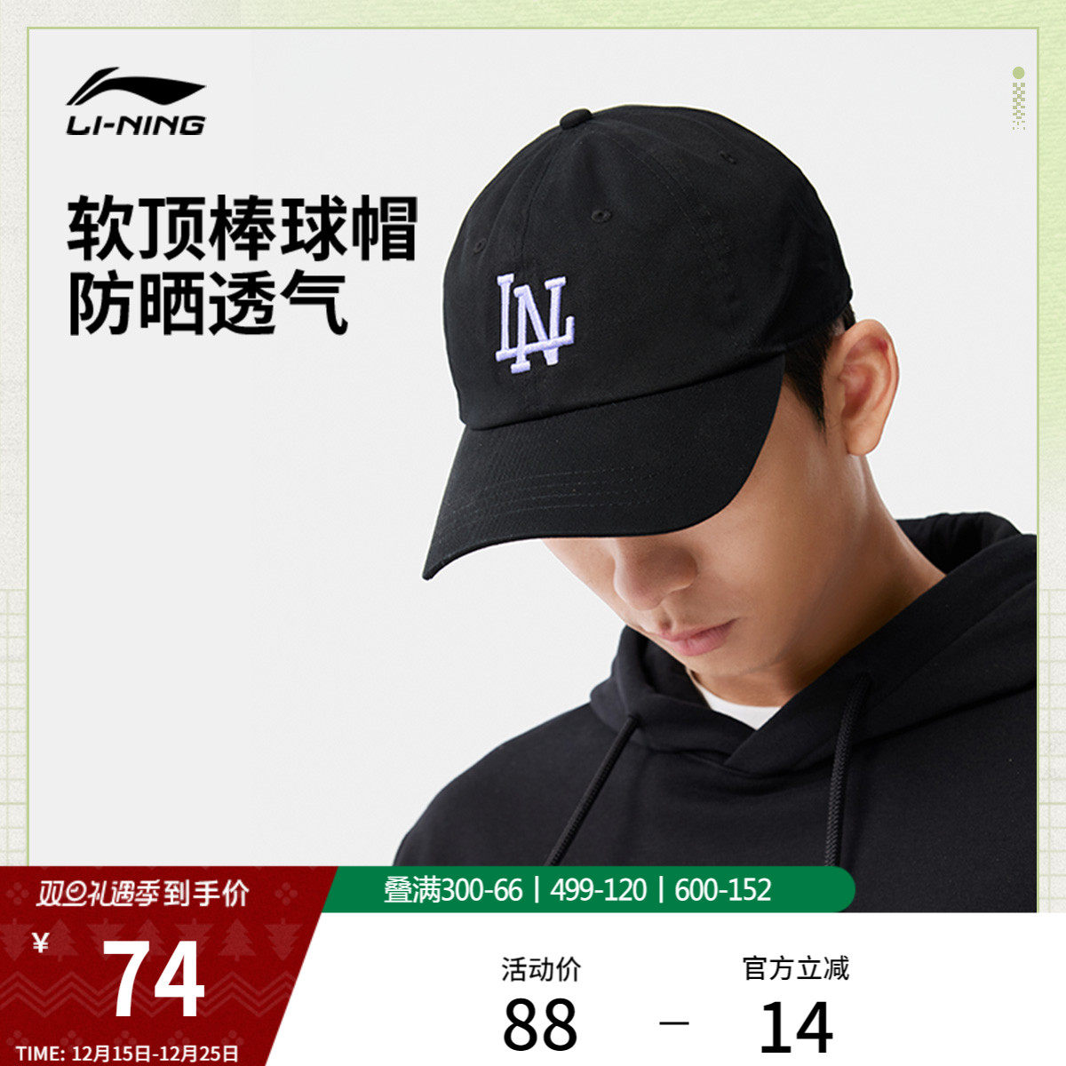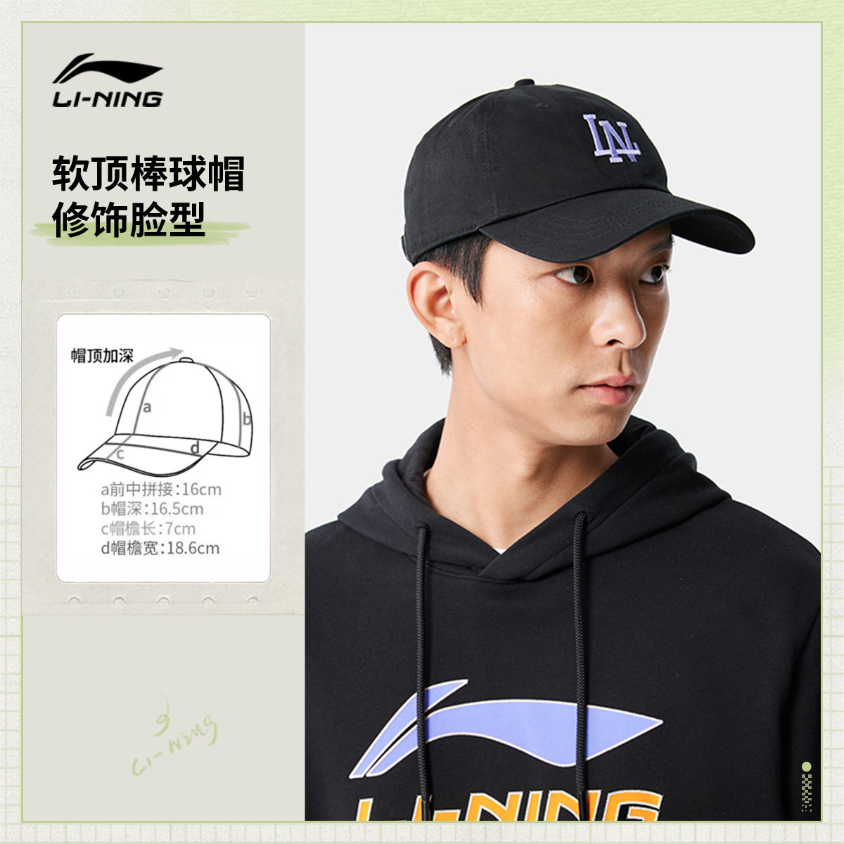 李宁棒球帽男士女士2026新款软顶帽百搭舒适强包裹显脸小运动帽子