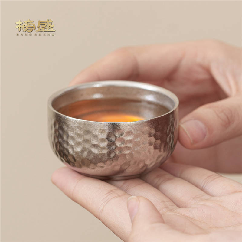 纯钛茶杯锤纹品茗杯主人杯小茶杯高档喝茶单杯茶盏功夫茶具