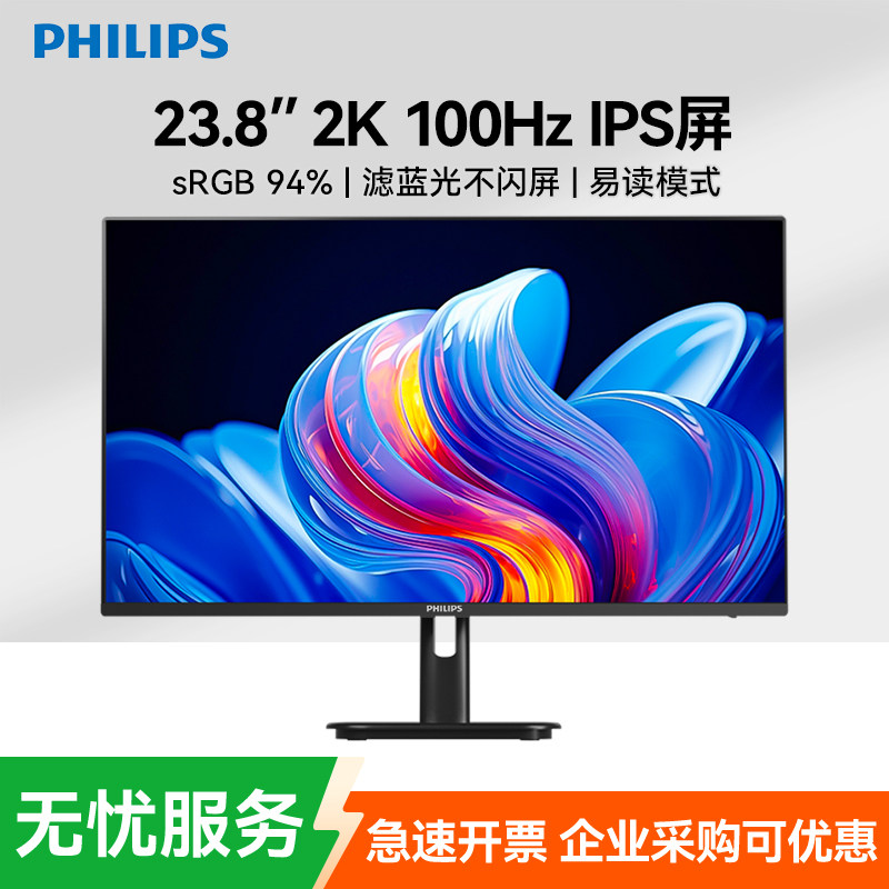 飞利浦23.8英寸2K100Hz IPS小钢炮送键鼠