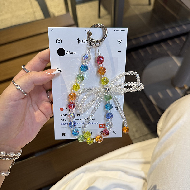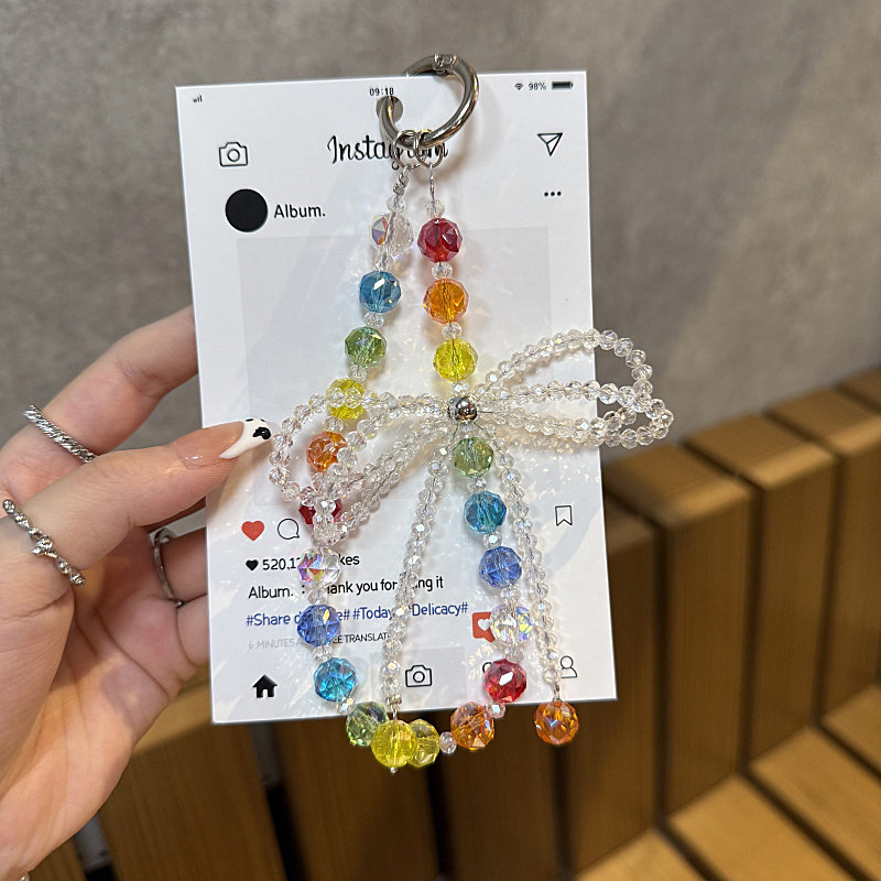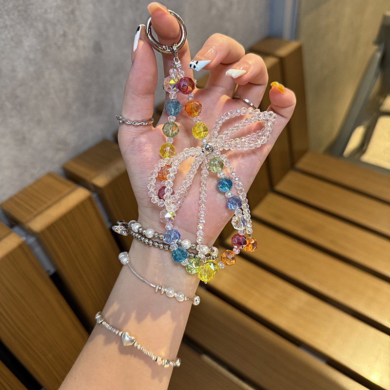 ins韩国彩色蝴蝶结串珠链包挂件个性创意夏日百搭链条装饰女