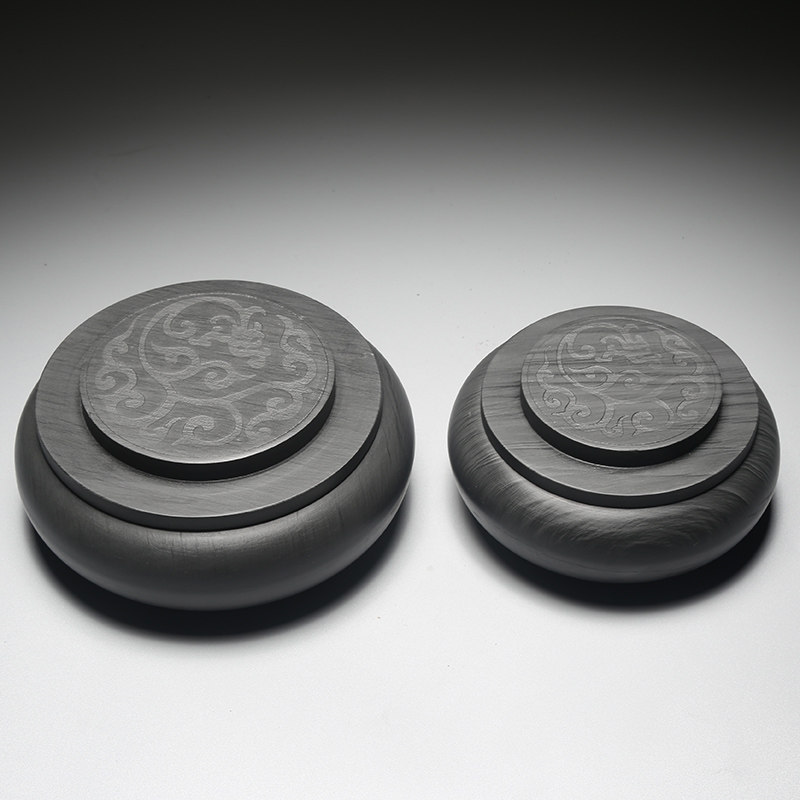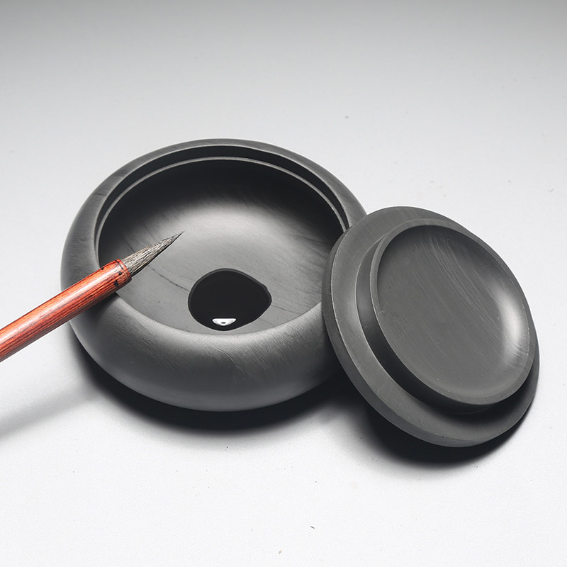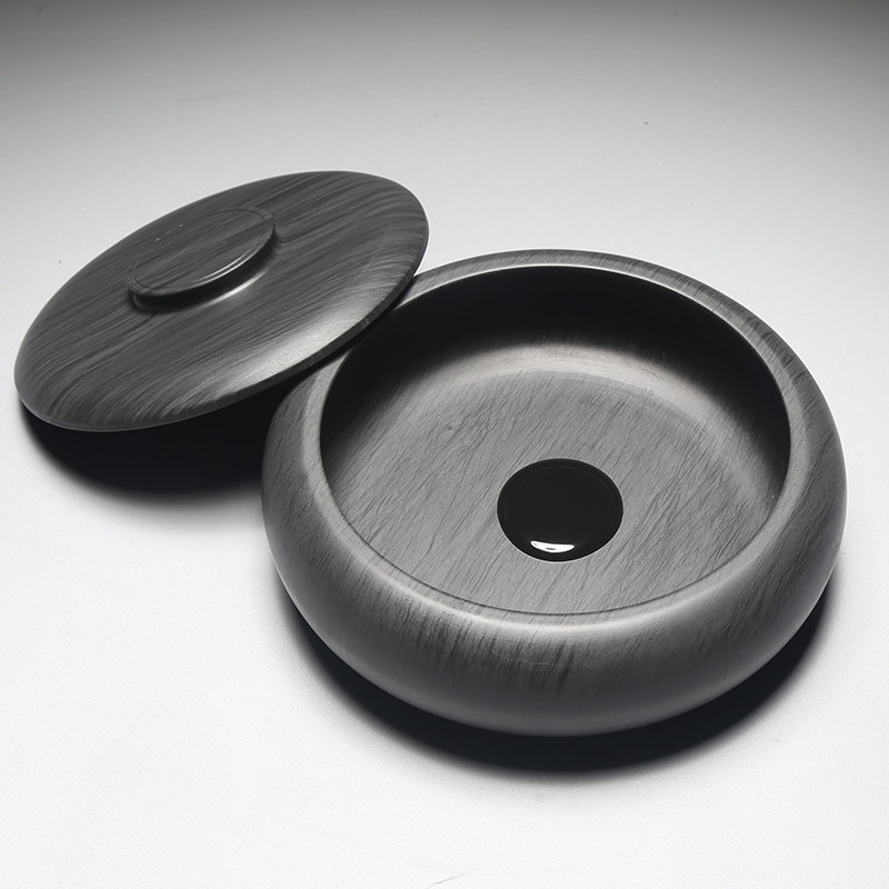 非遗安徽歙砚 火锅砚4寸5寸6寸8寸精工墨海 龙尾山老坑水波纹原石砚台文房四宝石头烟灰缸水底实用书画带盖砚