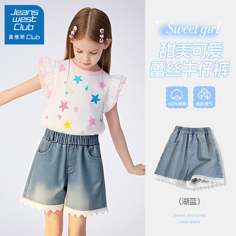 真维斯club女童短裤夏季薄款牛仔裤子2025新款女孩洋气宽松夏裤蓝
